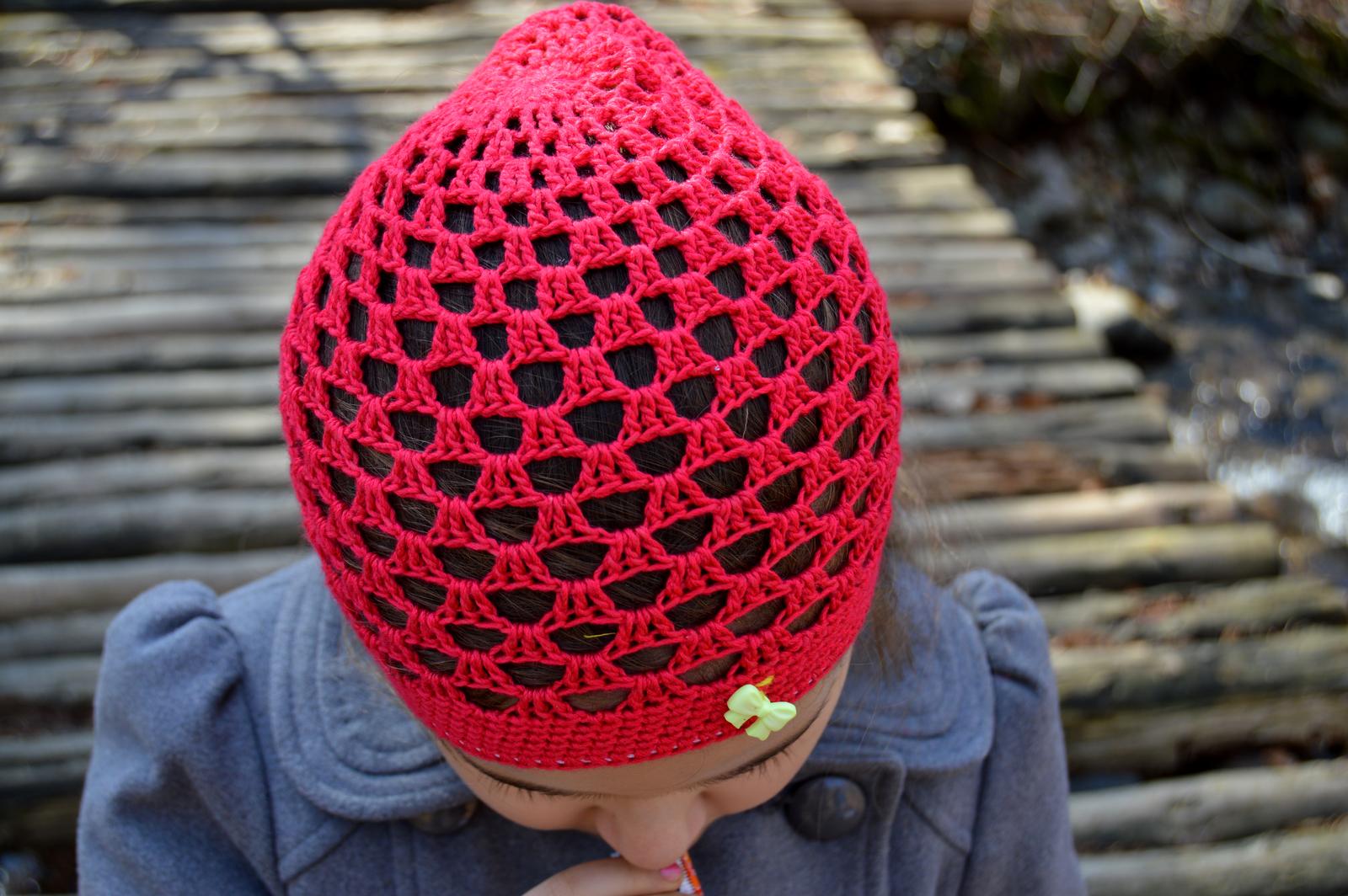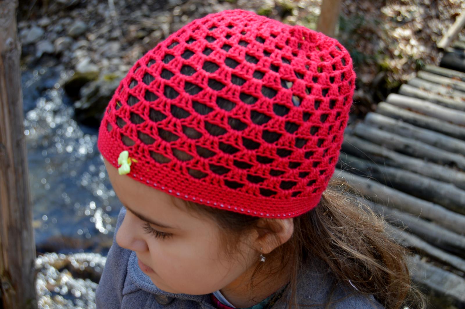 Ručne háčkovaná čiapočka s veľmi pekným vzorom a kvetom.