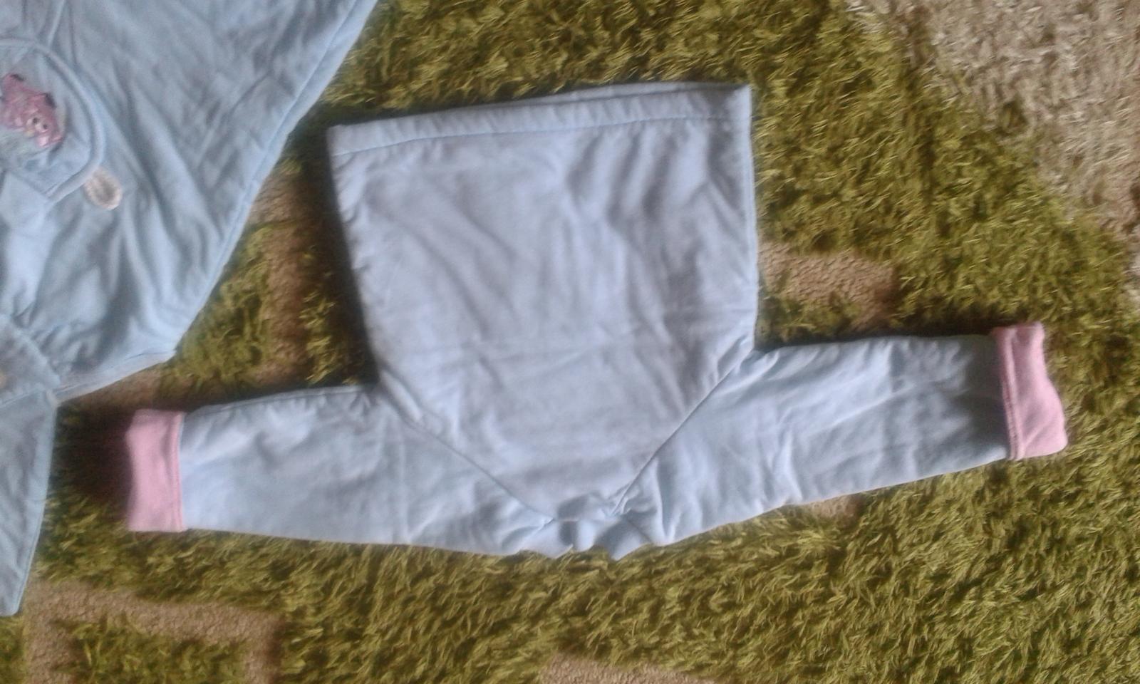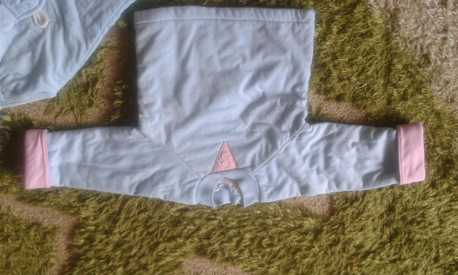 Posuniem zachovalú termosúpravu, jemnulinké vatovanie vo vnútri, možné minižmolky. Vrchná časť je trochu bledšia, bola viac nosená, kombinovaná je s bledoružovou. Typu jem na veľkosť 68, nakoľko nie je uvedená. Je pohodlná, vhodná do kočíka, autosedačky. Podľa mňa by vynosil aj chlapec . Podľa potreby premeriam. K cene je potrebné pripočítať aj poštovné. Dohoda možná.