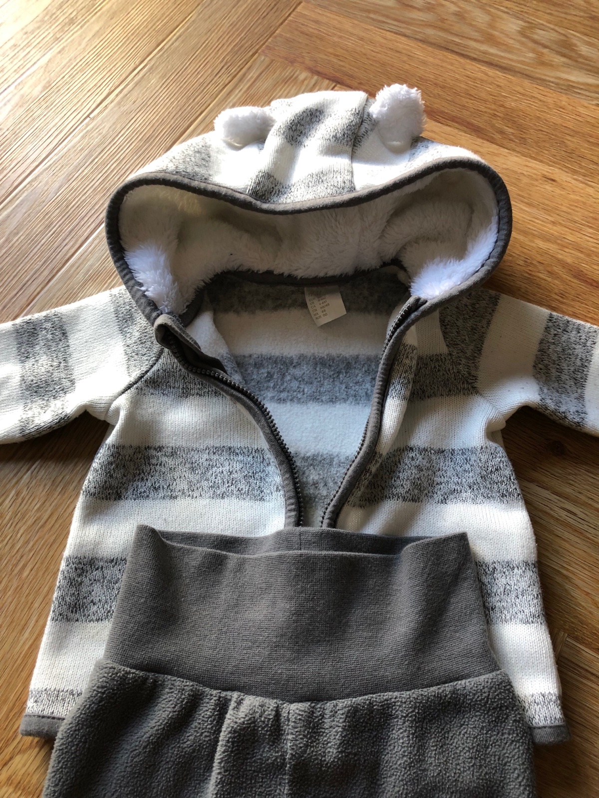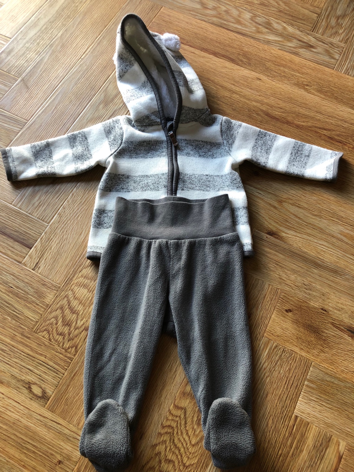 Pekný nosený stav, tmavšia súpravka ma trosku prací chlpok. Veľkost 3-6m. Cena spolu