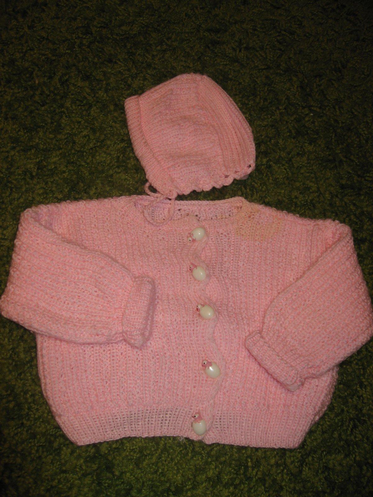 Krásna dievčenská štrikovaná súprava. Farba fialovo ružová, iba čiapočka a čelenka párkrát vzatá. Veľkosť odhadom, pri záujme rada premeriam.