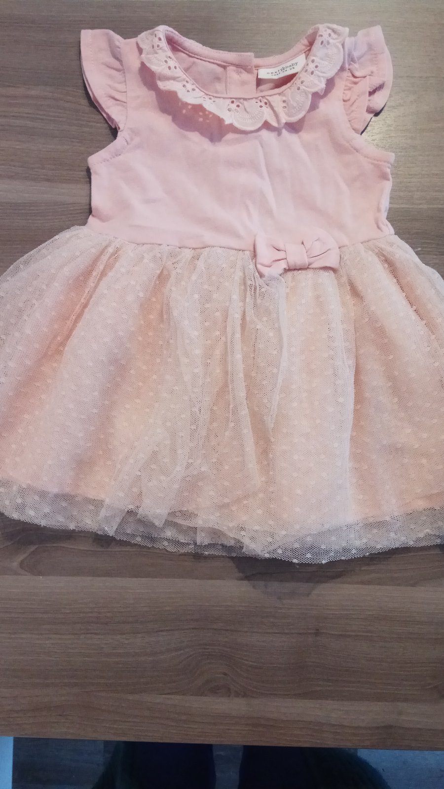 Krasne satocky staroruzovej/marhulovej farby s tylovou suknickou s bodkami. Vhodne na krstiny, oslavy, svadby,...