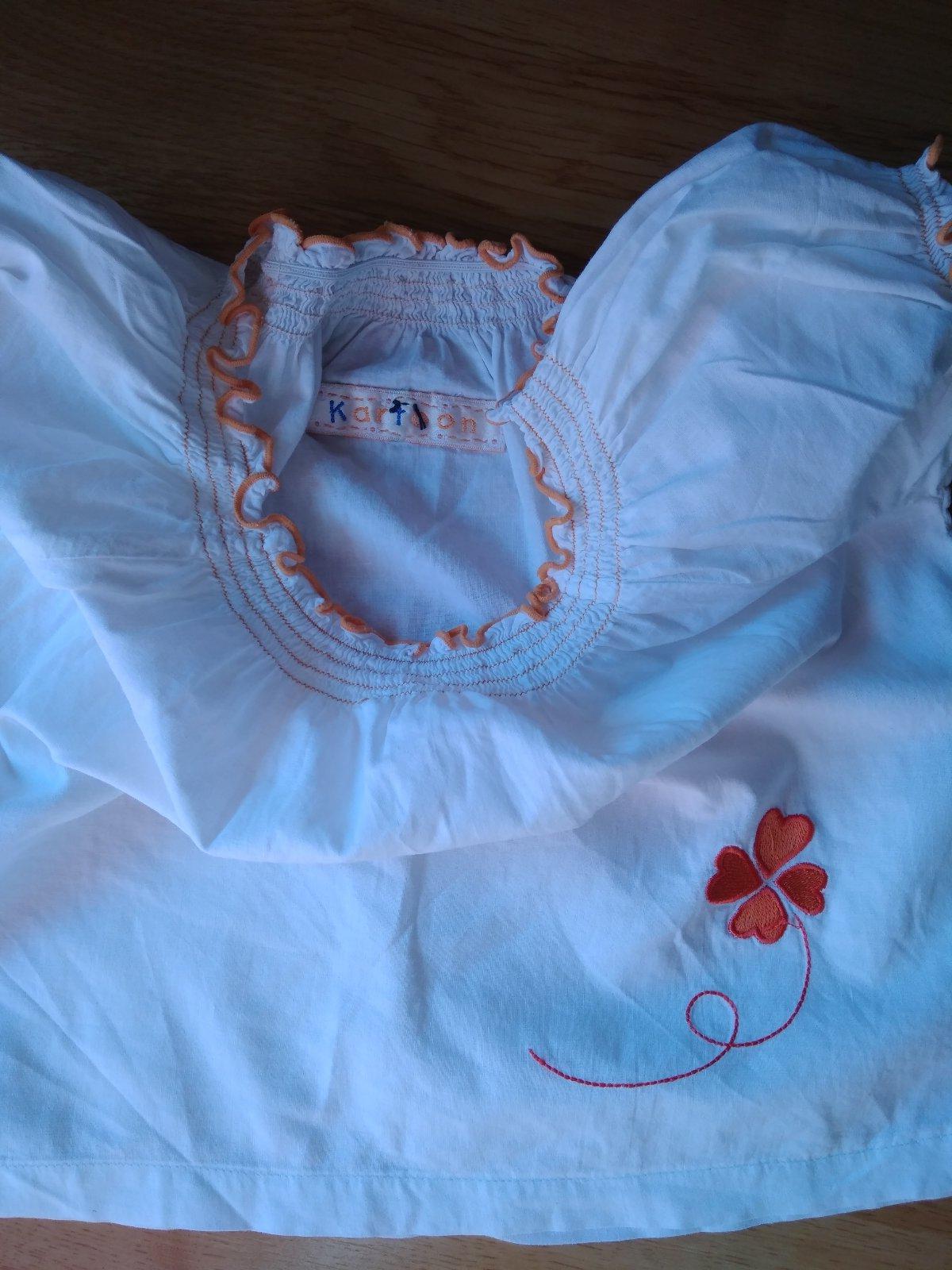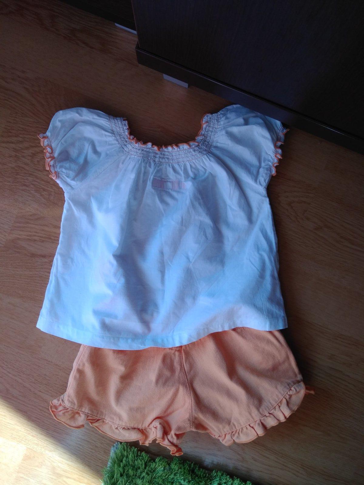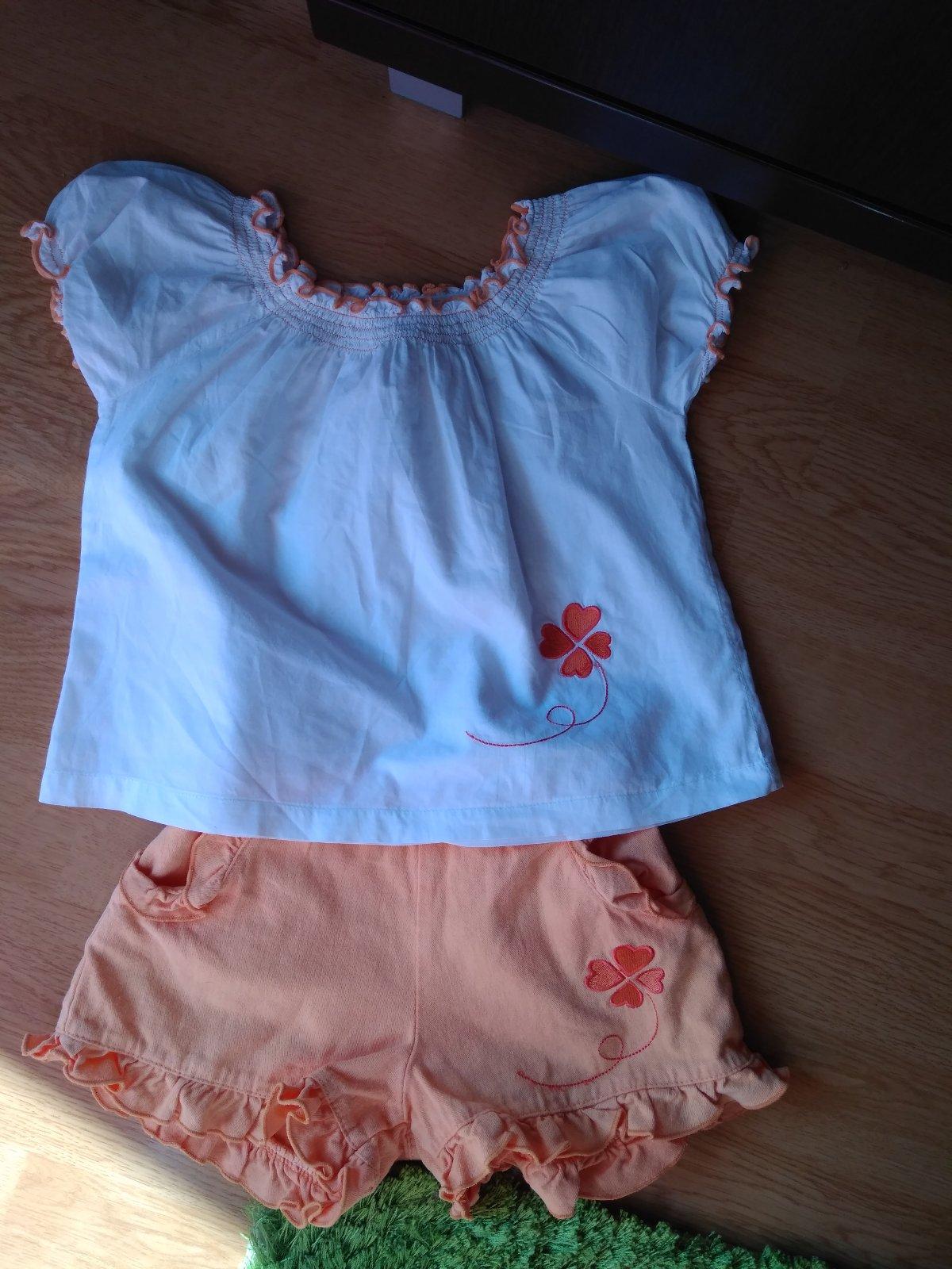 Posuniem zaujímavú supravicku nositeľnú dlhšie. Veľkosť odhadom. Tunicka ľahšia, bielej farby a kraťasy trošku hrubsieho materiálu. Sú oranžovej farby, ale trošku sýtejšie ako na foto. Nie sú známky nosenia, celá súprava je v zachovalom stave. Pri záujme pomeriam. K cene si treba prirátať poštovné.