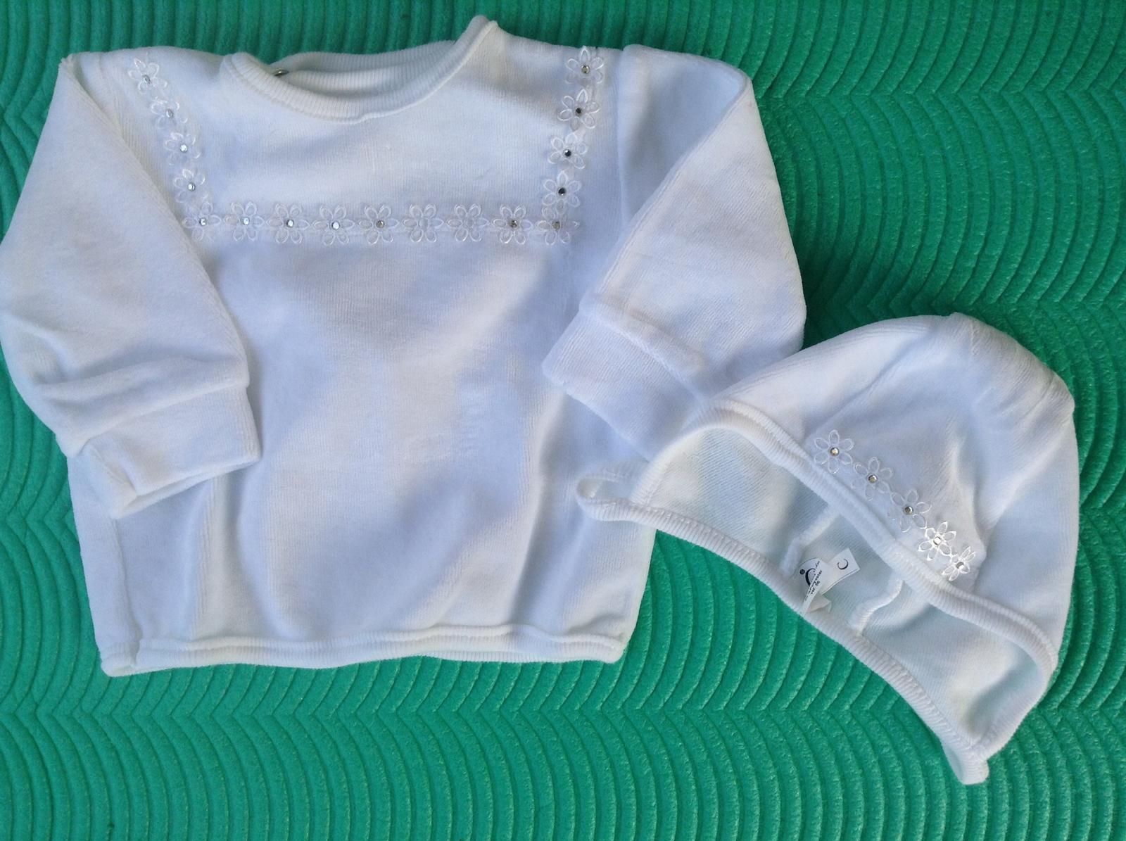 Posúvam set z jemného plyšu, veľ. 56, slovenská značka richelieu. Set obsahuje: tuniku, polodupacky, ciapocku a celenku. Oblečený bol jedenkrát. Malé bodky sú striebornej farby. Set je vhodný aj na...