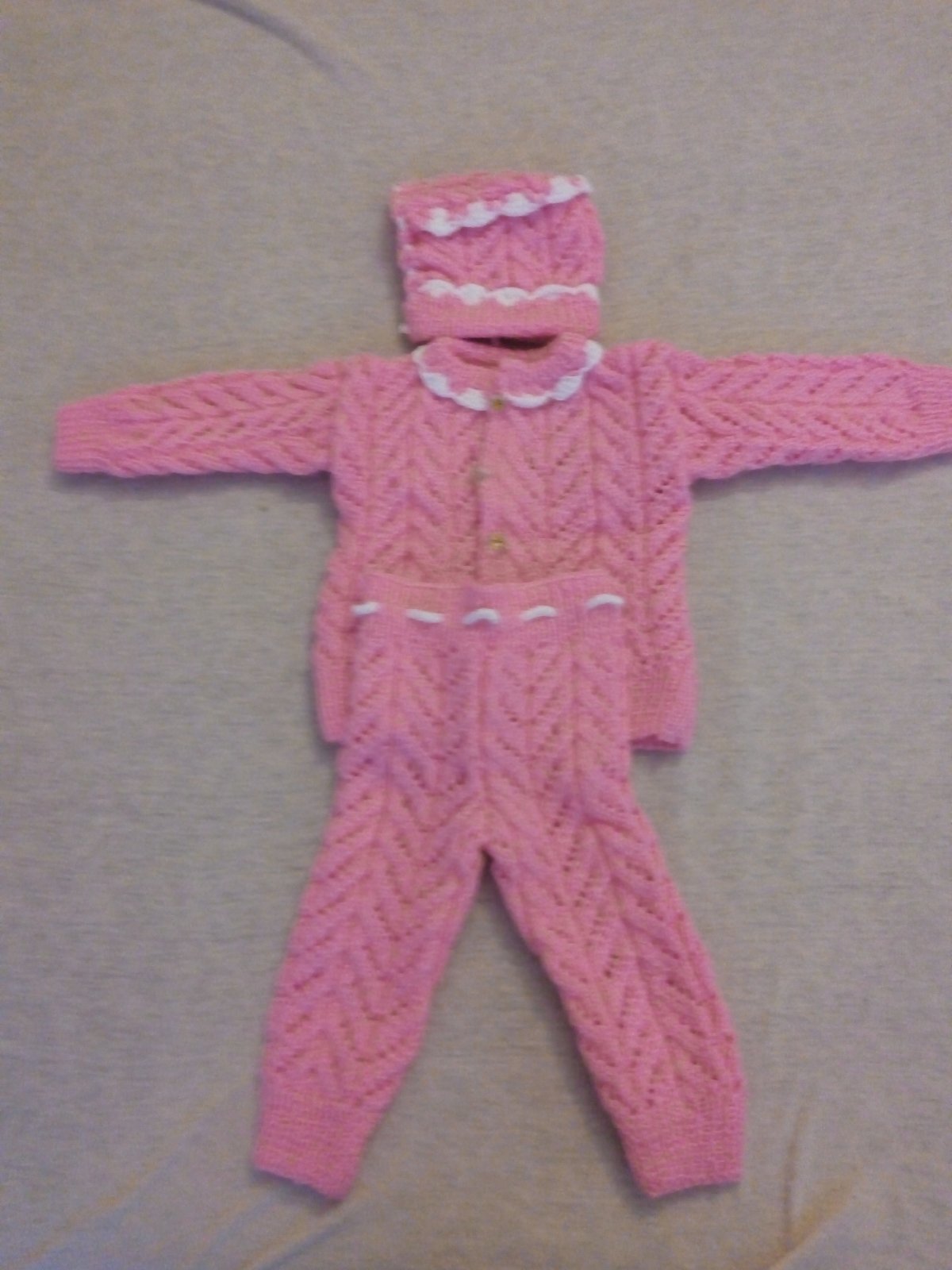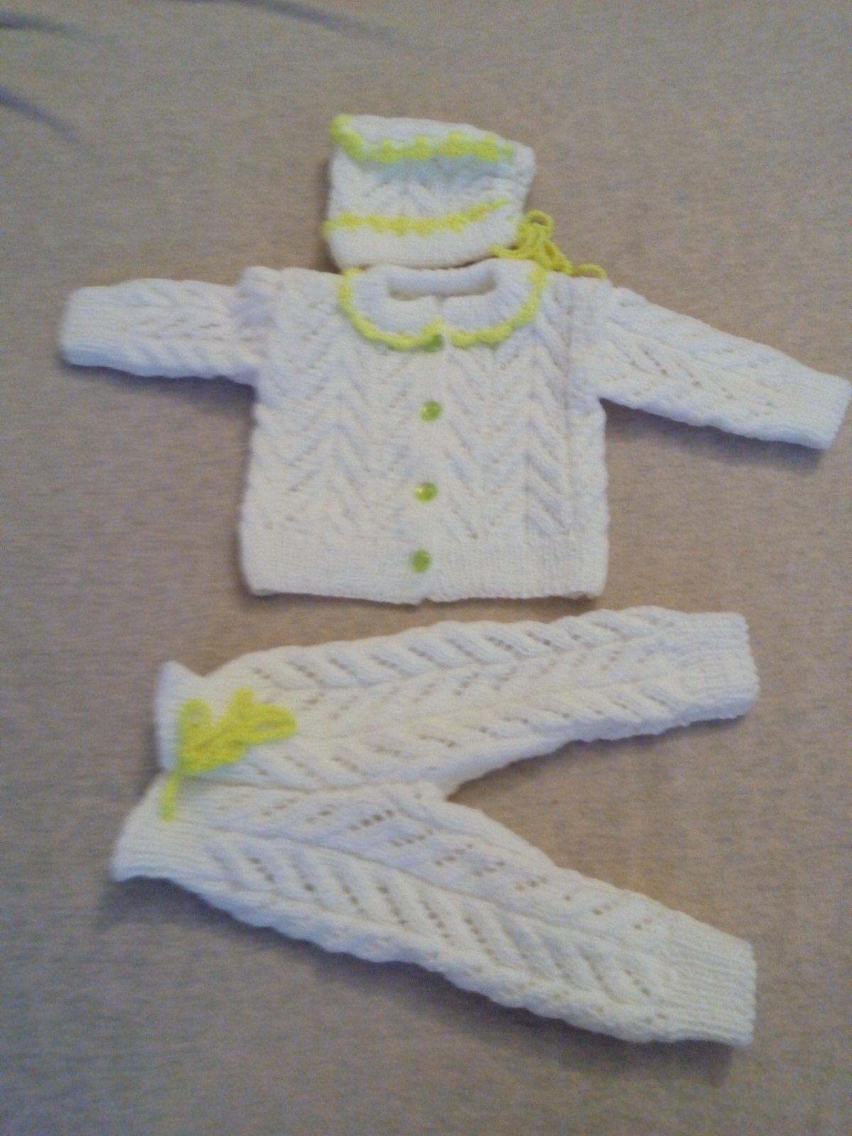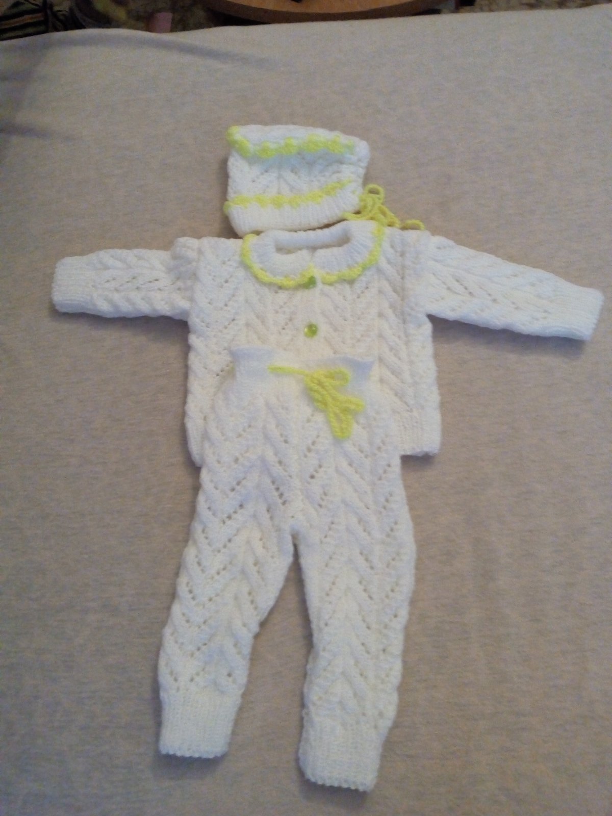 Krásna pletené súprava z detskej vlny 0 až 4 mesiacov v prípade záujmu viem vám spraviť do 4 týždňov rôzne farebné kombinácie aj inú veľkosť