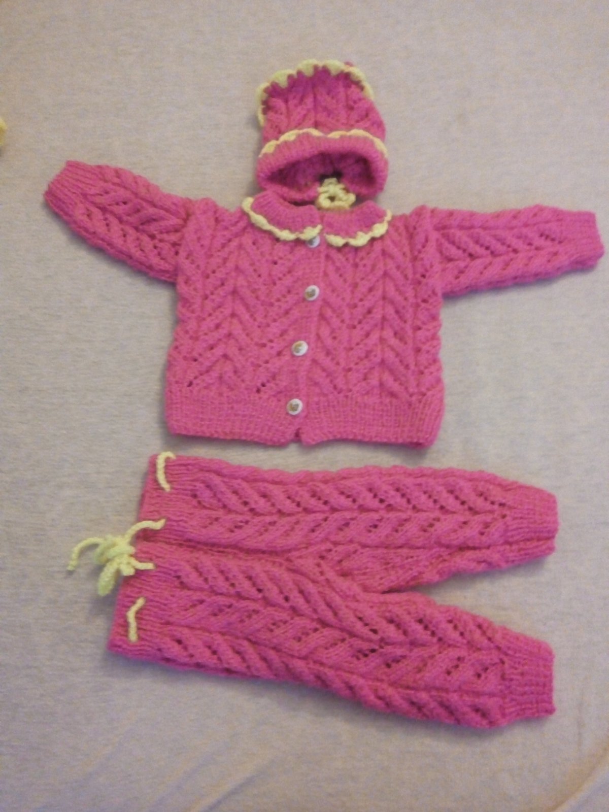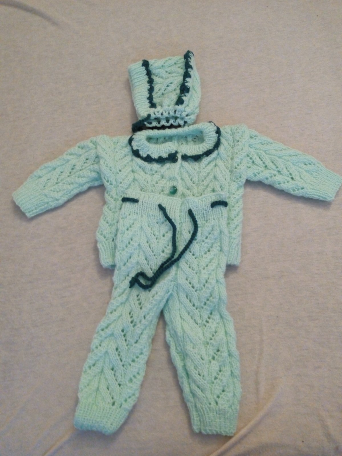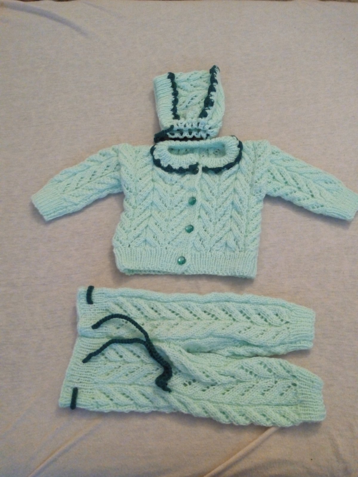 Krásna pletené súprava z detskej vlny 0 až 4 mesiacov v prípade záujmu viem vám spraviť do 4 týždňov rôzne farebné kombinácie aj inú veľkosť