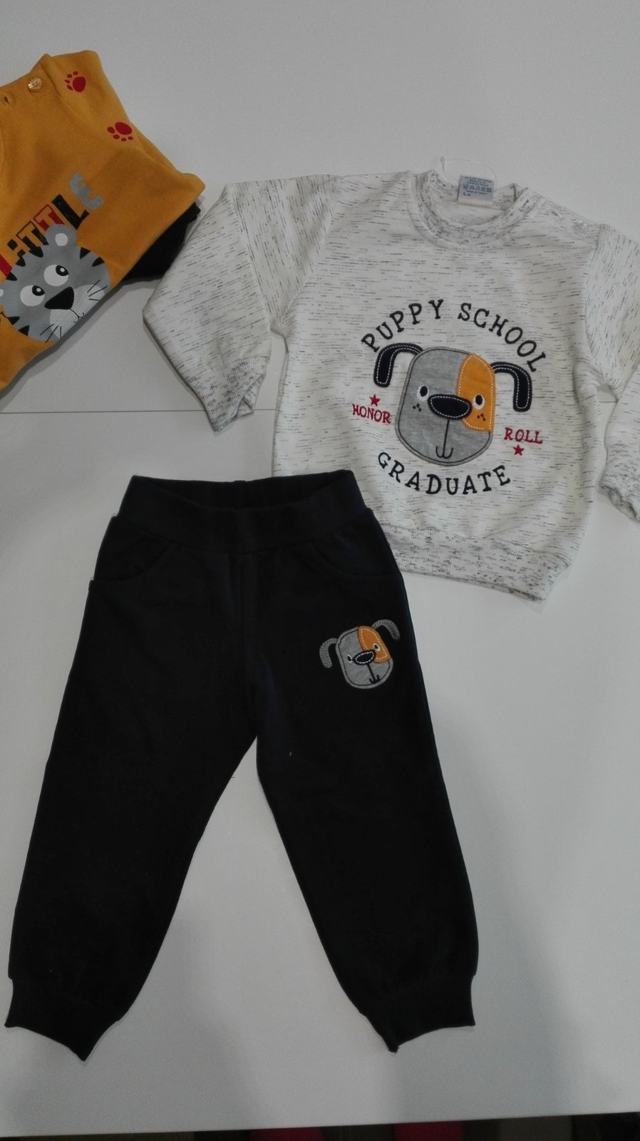 Veľmi milá súprava - z kvalitnej 100% bavlny, kupovaná v kamennej predajni (žiadna Čína, vyrobená v Turecku), s motívom psíka. Súprava je nová, ešte s visačkou, takže vhodná aj do daru. Určite neoľutujete.