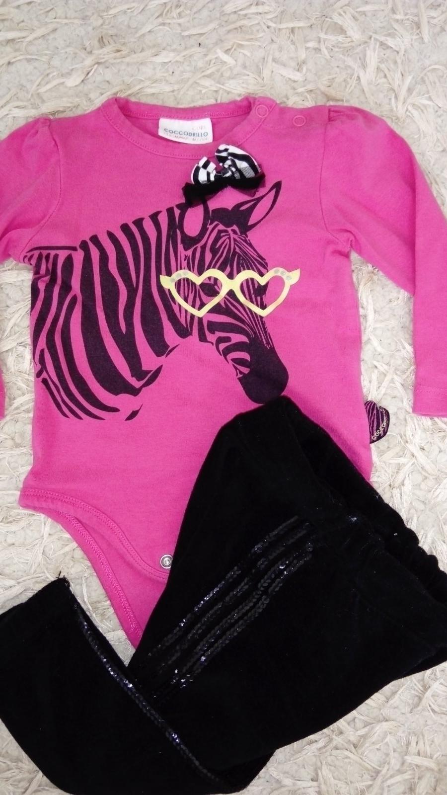 Predam nadherne body zladila som k tomu aj teplaciky, super to vyzera. Velkostou bodynko na 6-9m, a teplaciky sice na 12 mesiacov, ale daju sa aj skor, my sme to aspon tak nosili. V super stave, žiadne poskodenia.