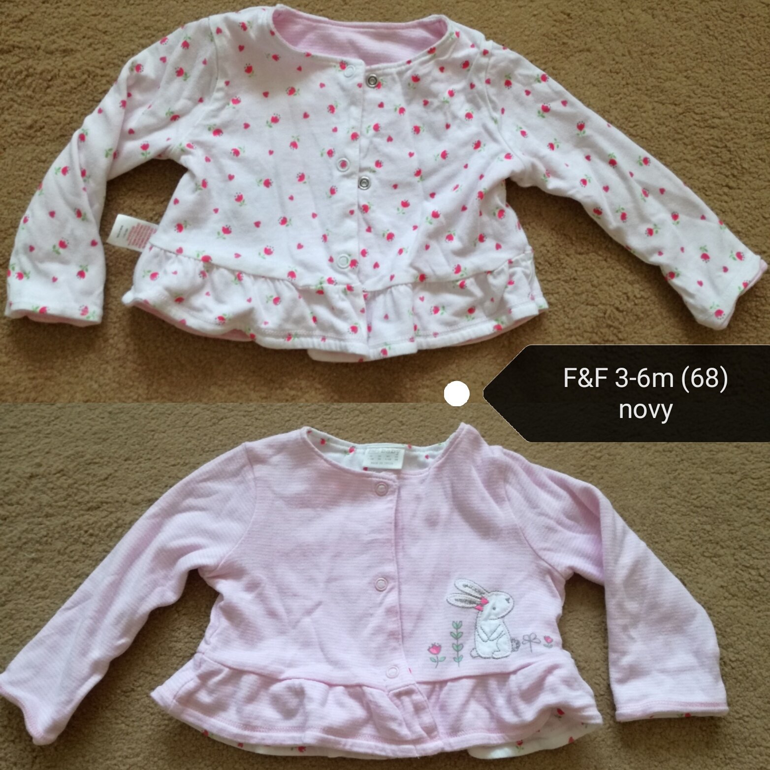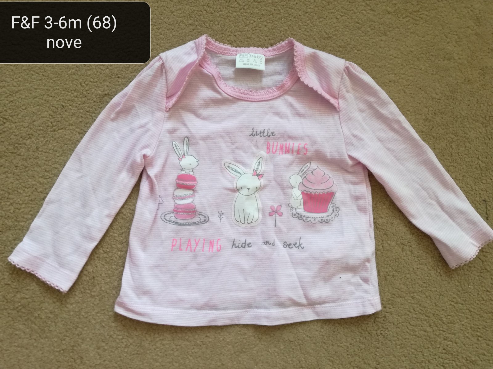 Predam nenosenu supravu, iba opranu. Nestihli sme vynosit. Obsahuje overal/pyzamko a ktorom sa daju schovat rucicky (vid posledne foto), tricko s dlhym rukavom a obojstranny svetrik. Velkost 3-6m (68). Znacka F&F. Cena za vsetko 7€.