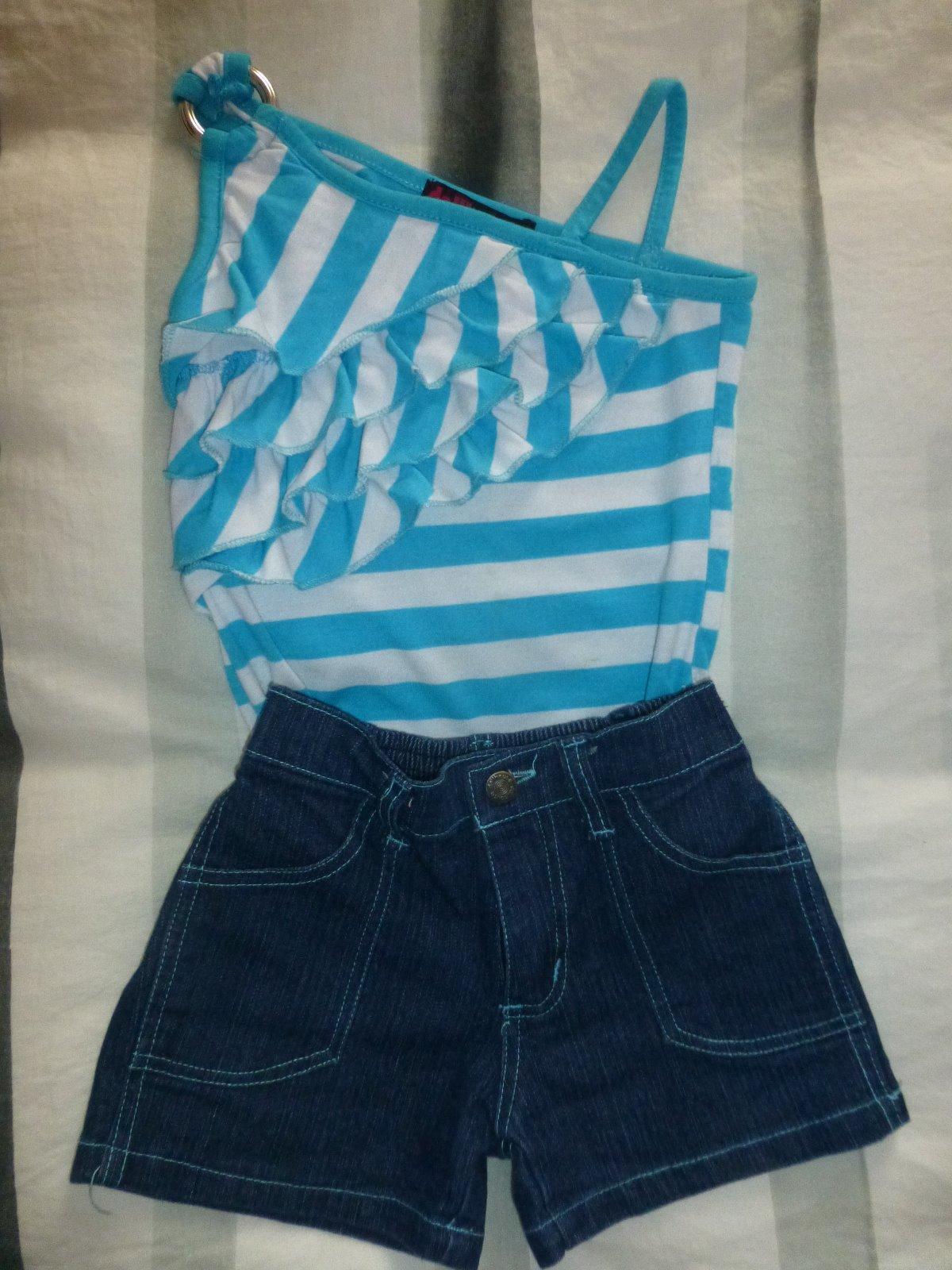 Krásny kompletík, výborný nosený stav. Rozmery: kraťasy: pás 20 cm, ale gumka je veľmi elastická. Tričko: dĺžka 37, šírka 25.