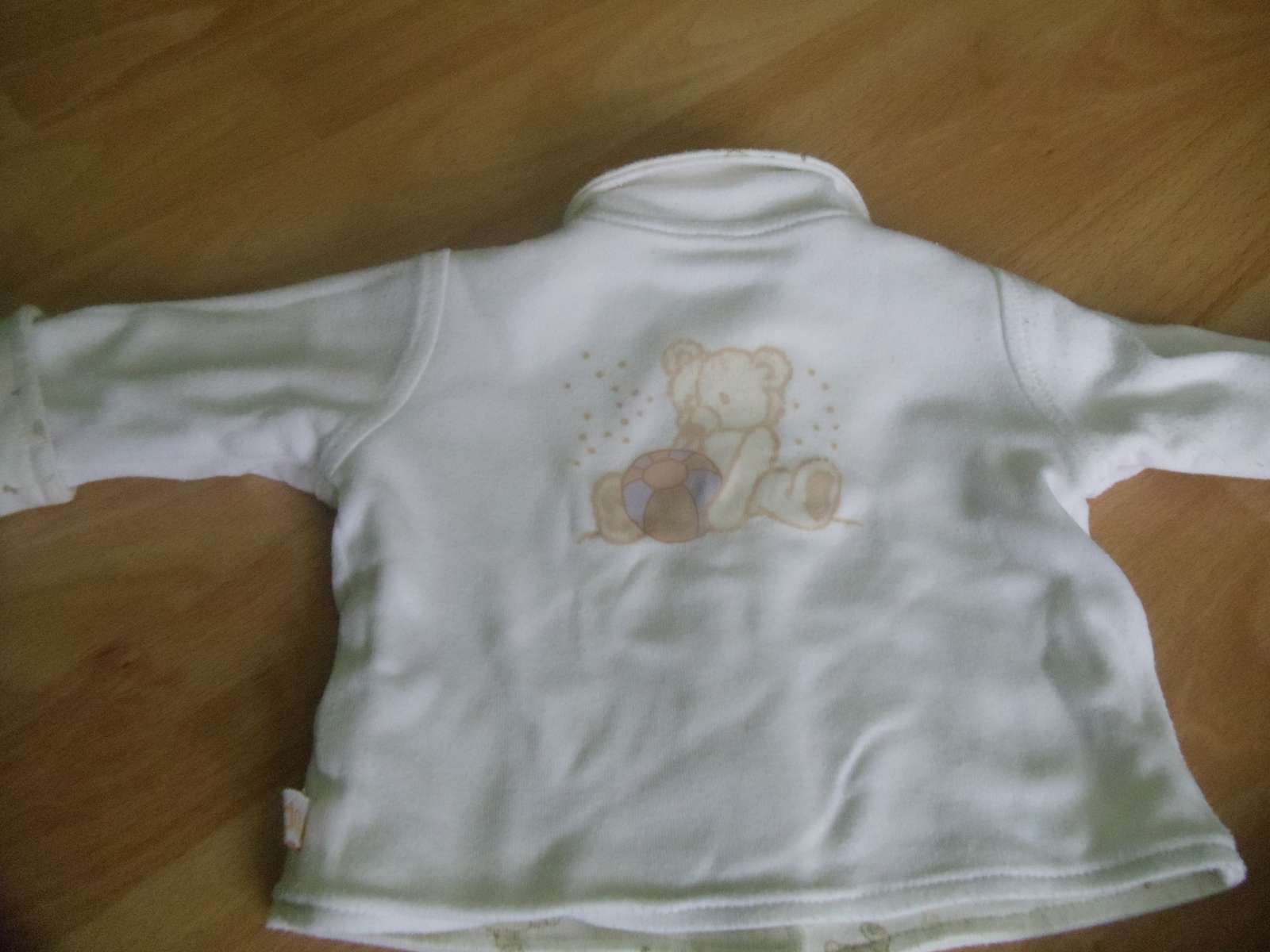 značka teddy,vhodný od narodenia...bol nosený len oboma mojimi chlapcami...okrem žmolkov mu nič neubuda na kráse:)žmolky su hlavne na patentoch,z jednej strany je biely a z druhej bežový s macíkmi.)