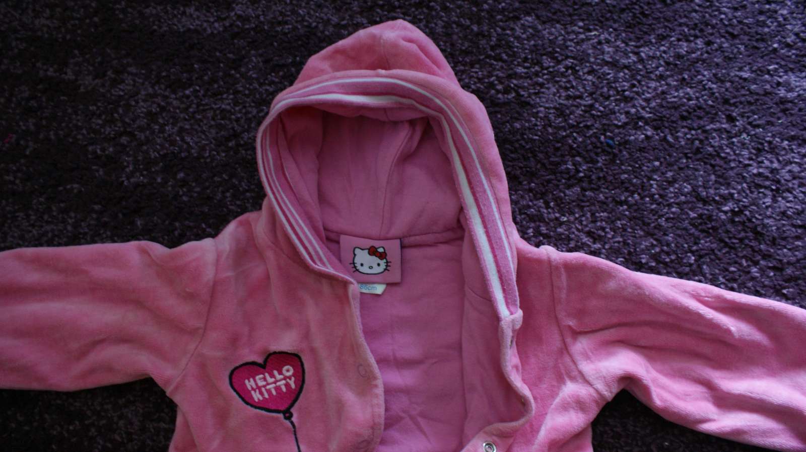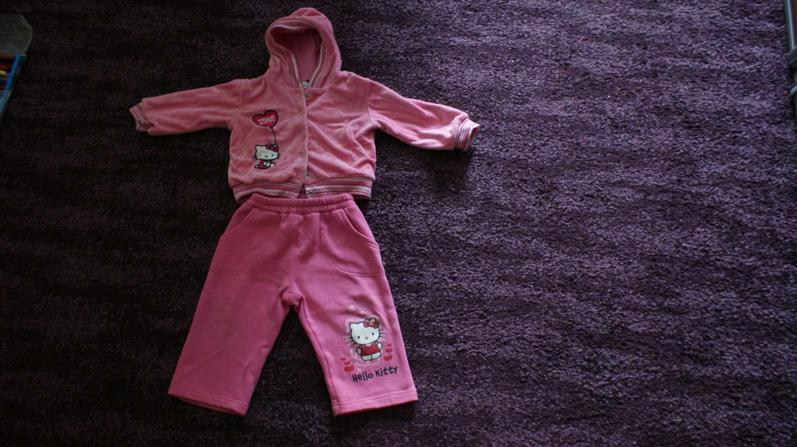Ponukam krasnu bundicku s teplacikmi, nie je to suprava, no obe som zakupila v jednom znackovom obchode a velmi sa to k sebe hodi, takze to vyzera ako komplet. Obidve su original Sanrio - Hello Kitty ruzovej farby. bundicka na cvoky. Material nieco ako plys, ci velur. Velkost je uvedena 86 a teplaciky, to je 100% bavlna velkost 80. Ako vsak pisem, da sa to nosit spolu zhruba od 9 mesiacov do cca 20 mesiacov. Bundicka oblecena par krat ale teplacky sme nosili viac, nase oblubene. Ale aj tak vo velmi dobrom stave. Cena za supravu 10e. Povodna cena ovela vyssia. Postovne 1,40e alebo osobny odber. Inzerujem viac tak kludne nakuknite:)