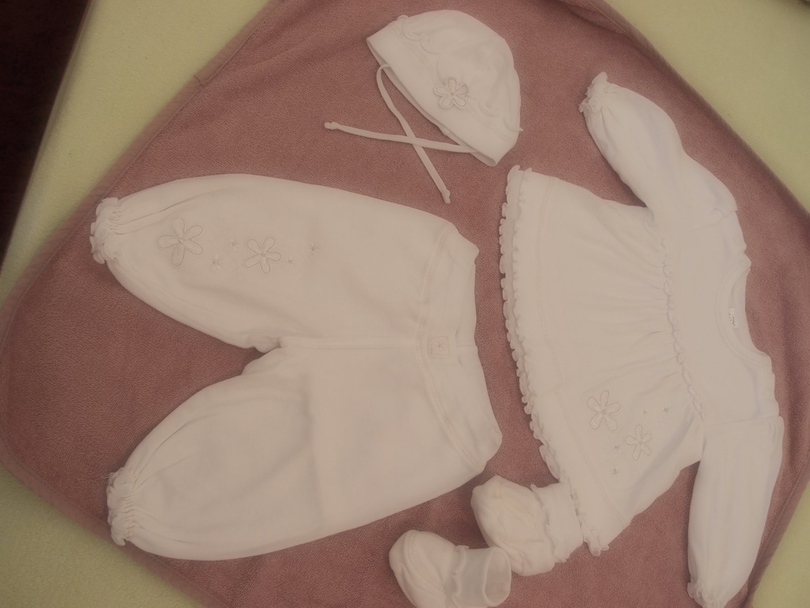 Detska súprava par krát oblecena. Čiapka ma zle presity jeden svik, my sme ju nosili aj tak,ale nie je problem prežiť. Veľkosť 68 Rifle uplne nenosené 68-74