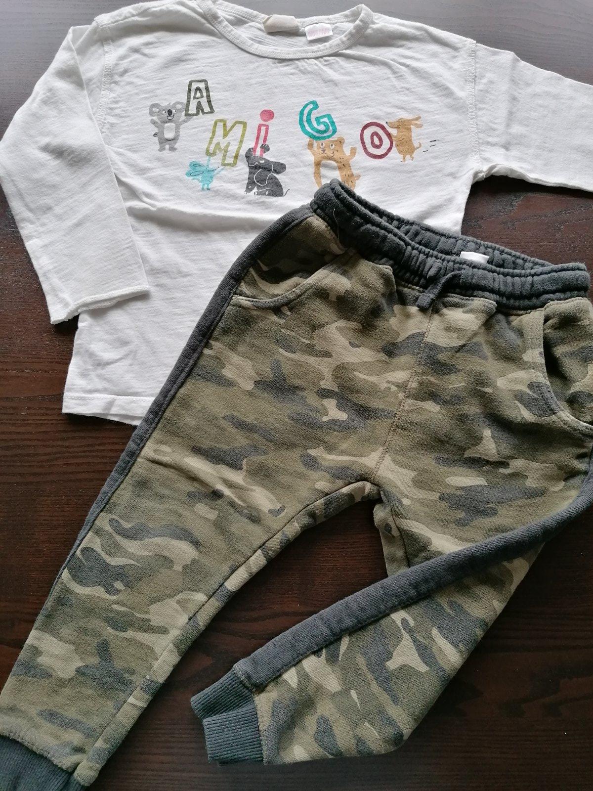 Predám legíny a tričko maskáčový vzor, obe majú žmolky a vidieť pranie. Cena spolu 12€ + poštovné