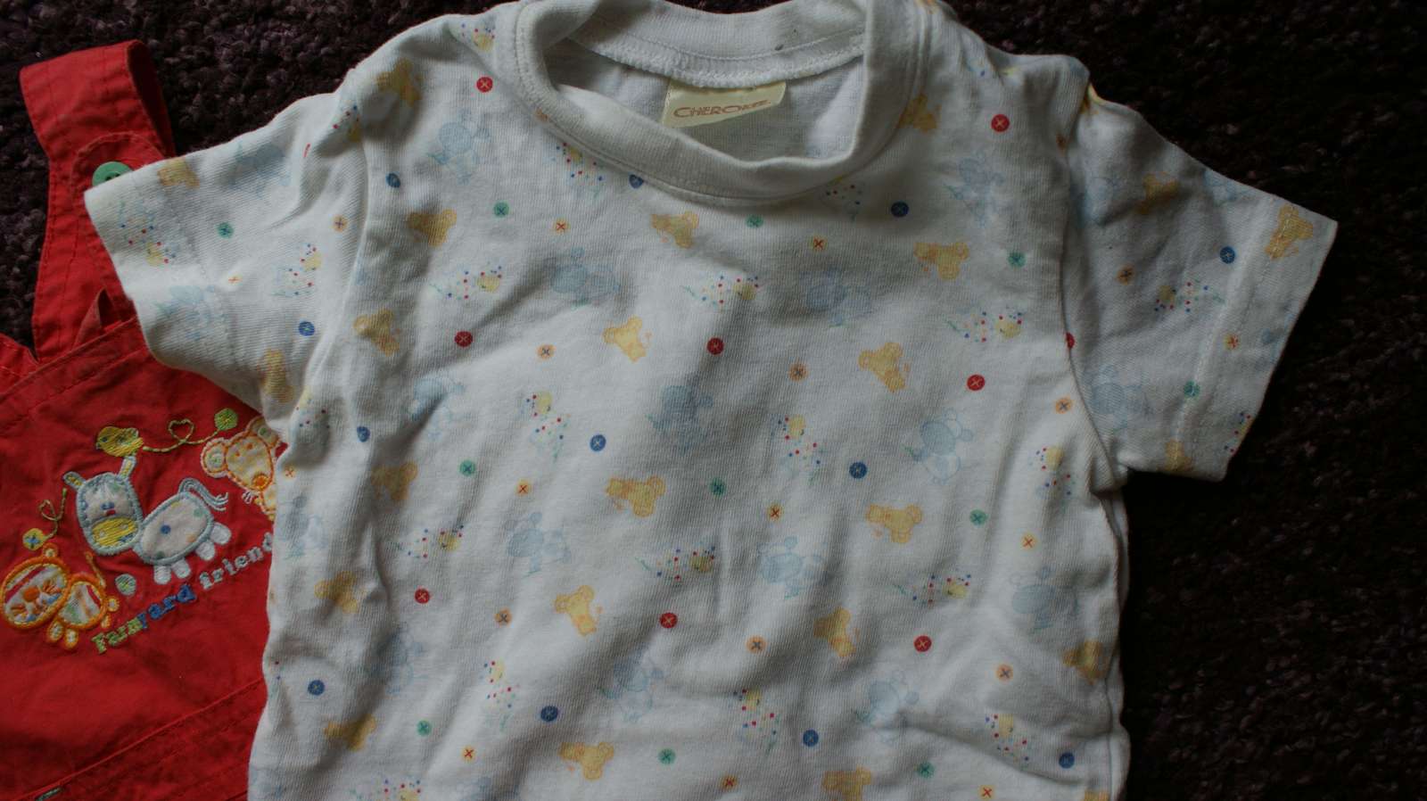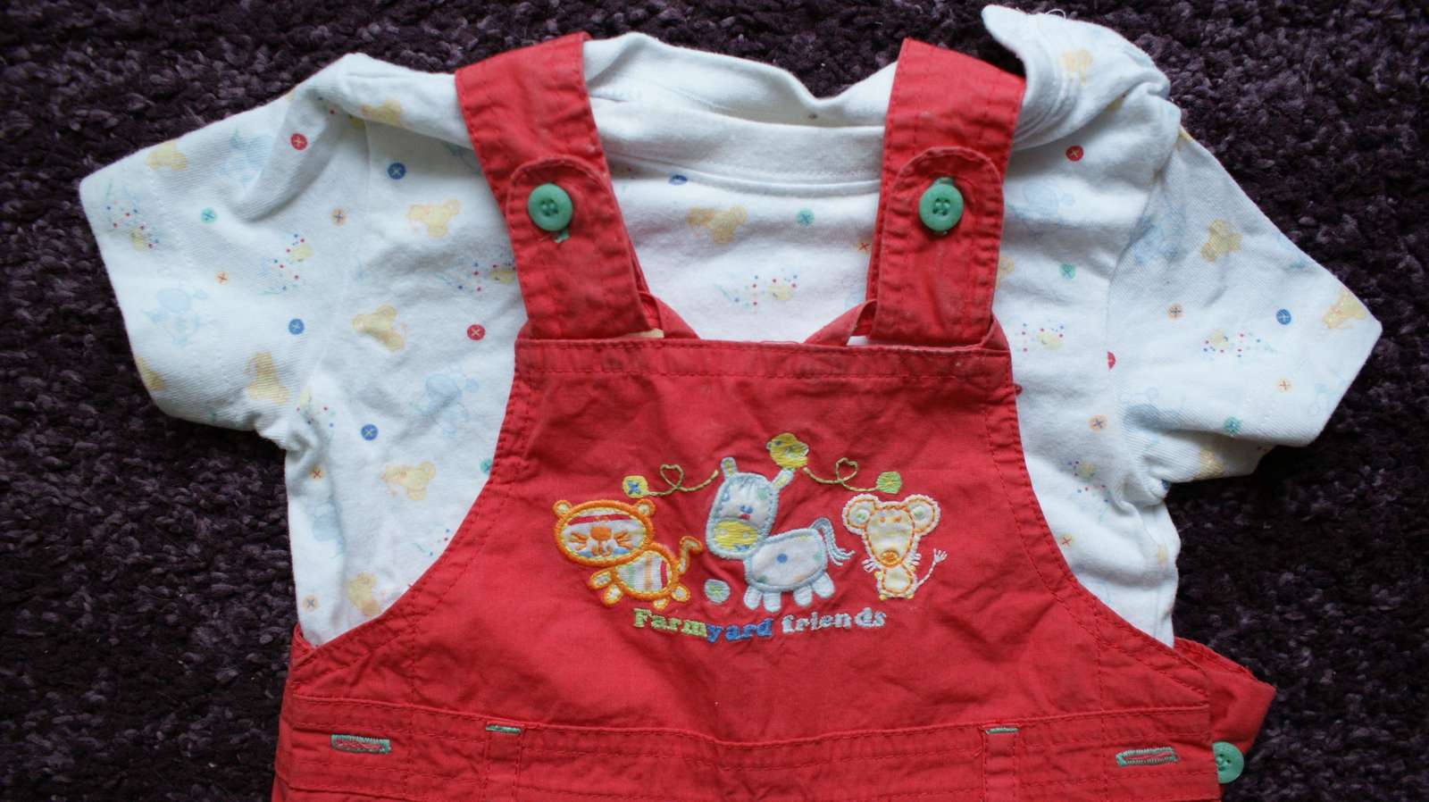 Nadherna suprava kratasov na traky a tricka - velmi malo nosene, mali sme do 3x. Napisana velkost 0-3 mesiace ale urcite sa da nosit dlhsie, tipujem tak do 9 mesiacov. Na tricku potlac zvieratiek a ako aj na nohaviciach zobrazene zvieratka. Moznost zdola rozopinat, co je velmi prakticke pri vymene plienocky..:) Nadherne a vo vynikajucom stave. Postovne 1,40e alebo osobny odber. PC bola ovela vyssia.. Inzerujem viac :)