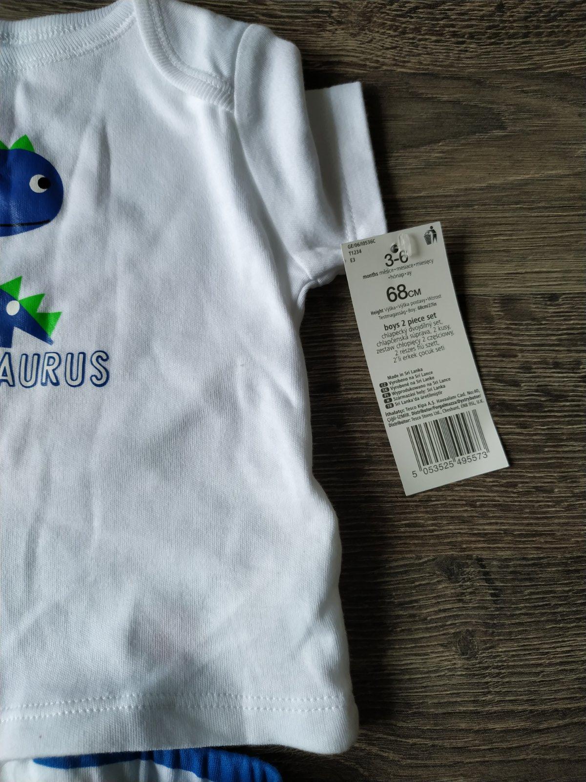 Praktický set na leto s dinosaurom pozostávajúci z trička a pasikavych legín.