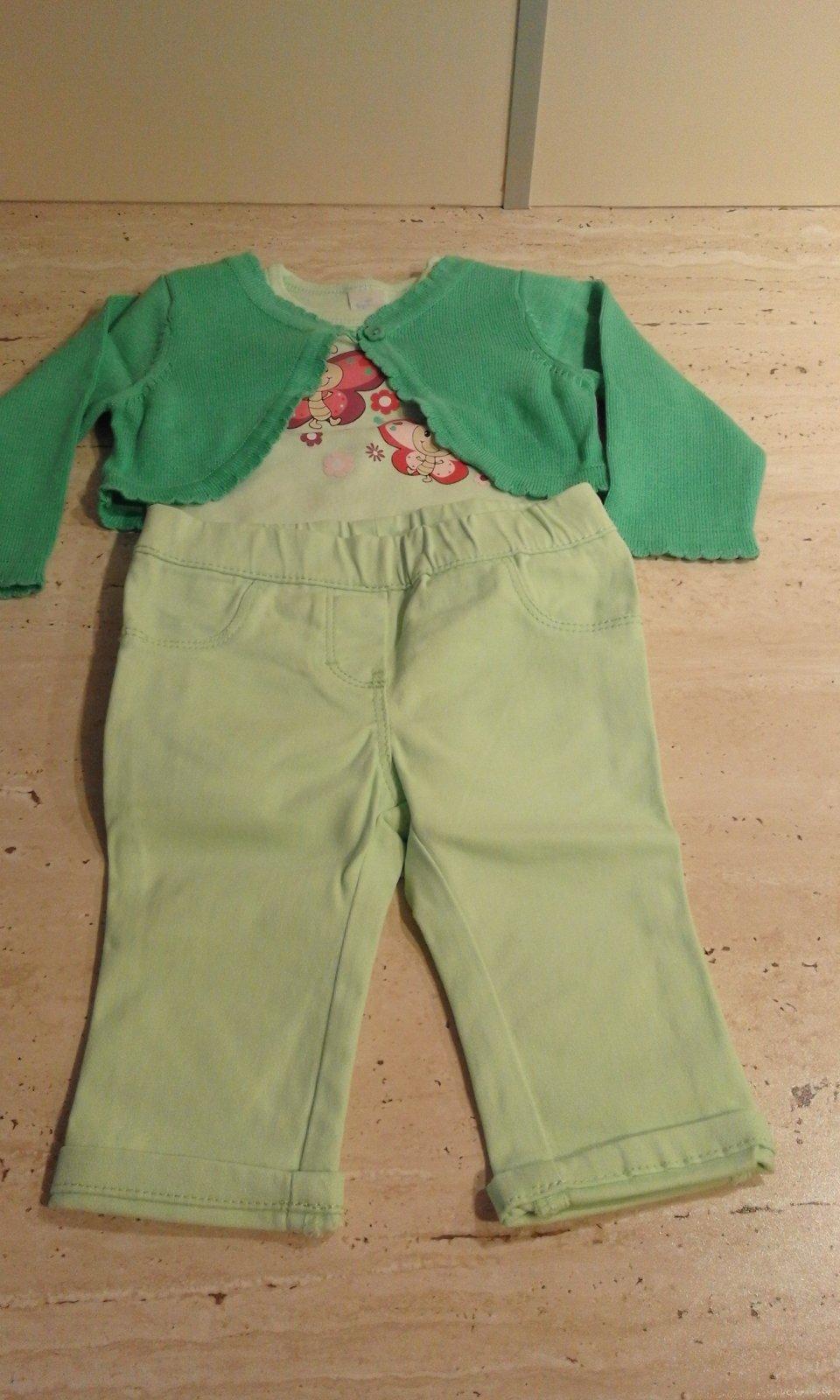 Predám mentolový setík - metolové rifle č. 68, trávovozelené bolerko č. 68 a bledozelené mentolové body s motýlikmi č. 62 vo veľmi dobrom stave, málo nosené, vhodné na jar.