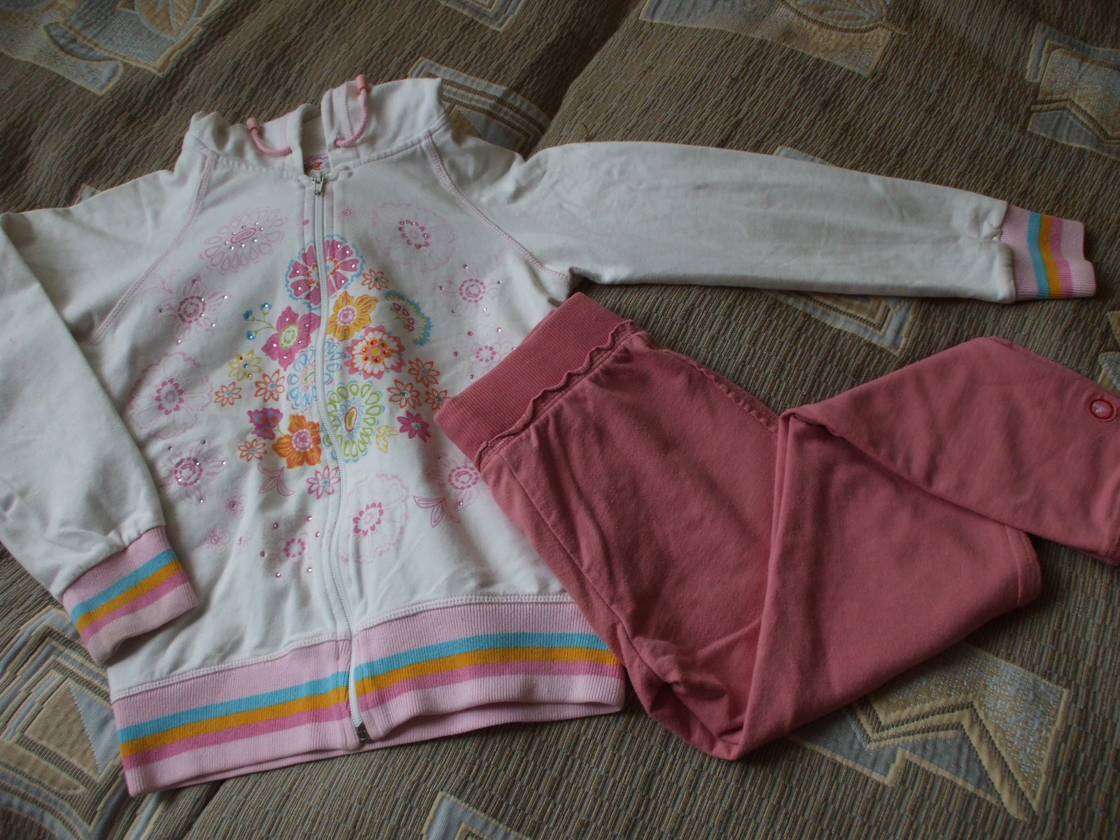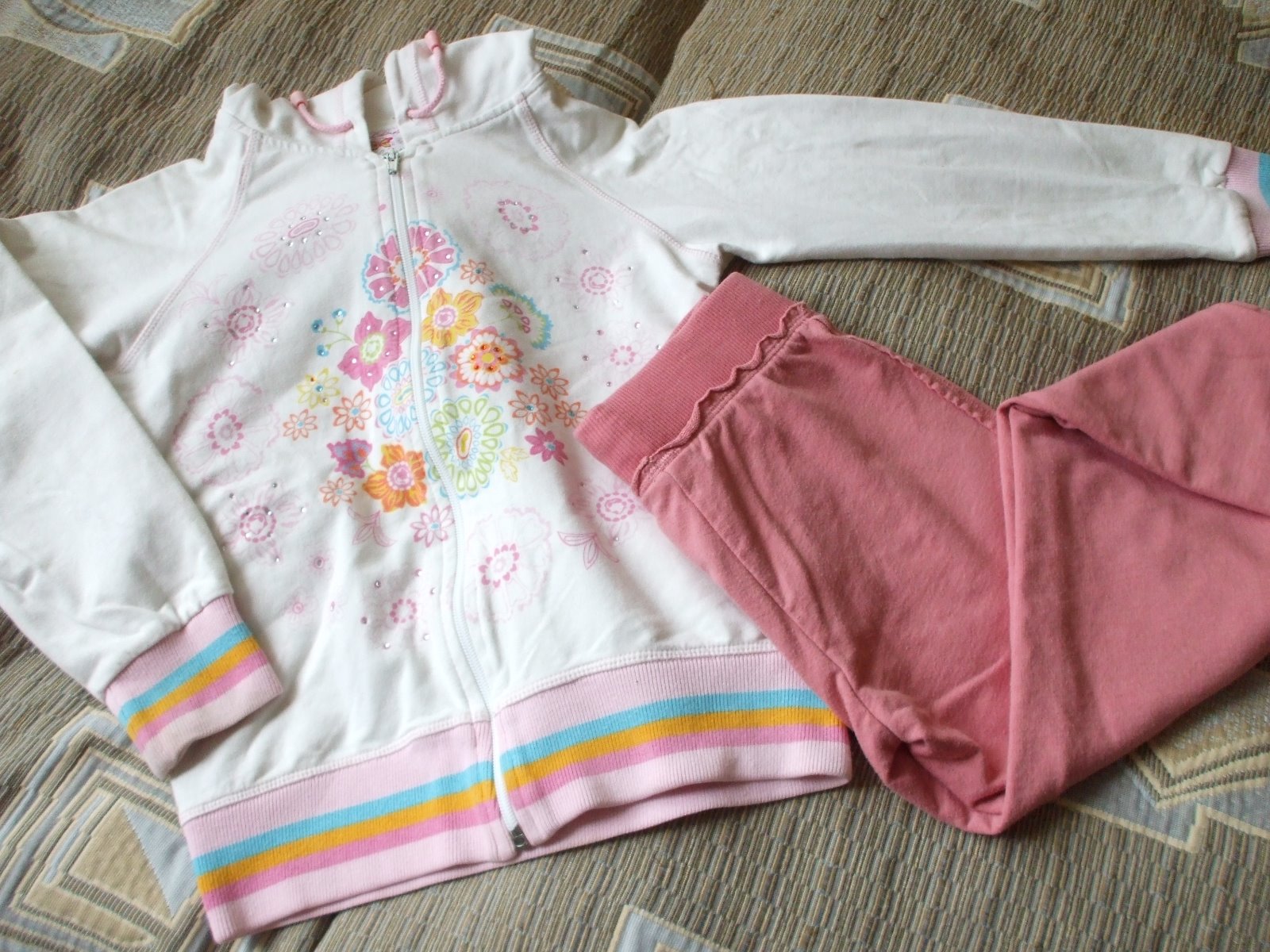 Mikina a tepláčiky vo výbornom stave. Mikina je zn. Wojcik, krásne zdobená kamienkami a kvietkami, tepláčiky zn. Next.