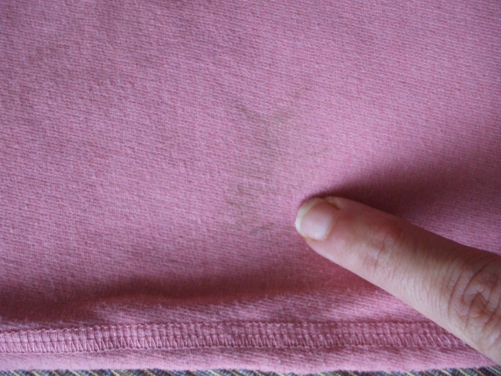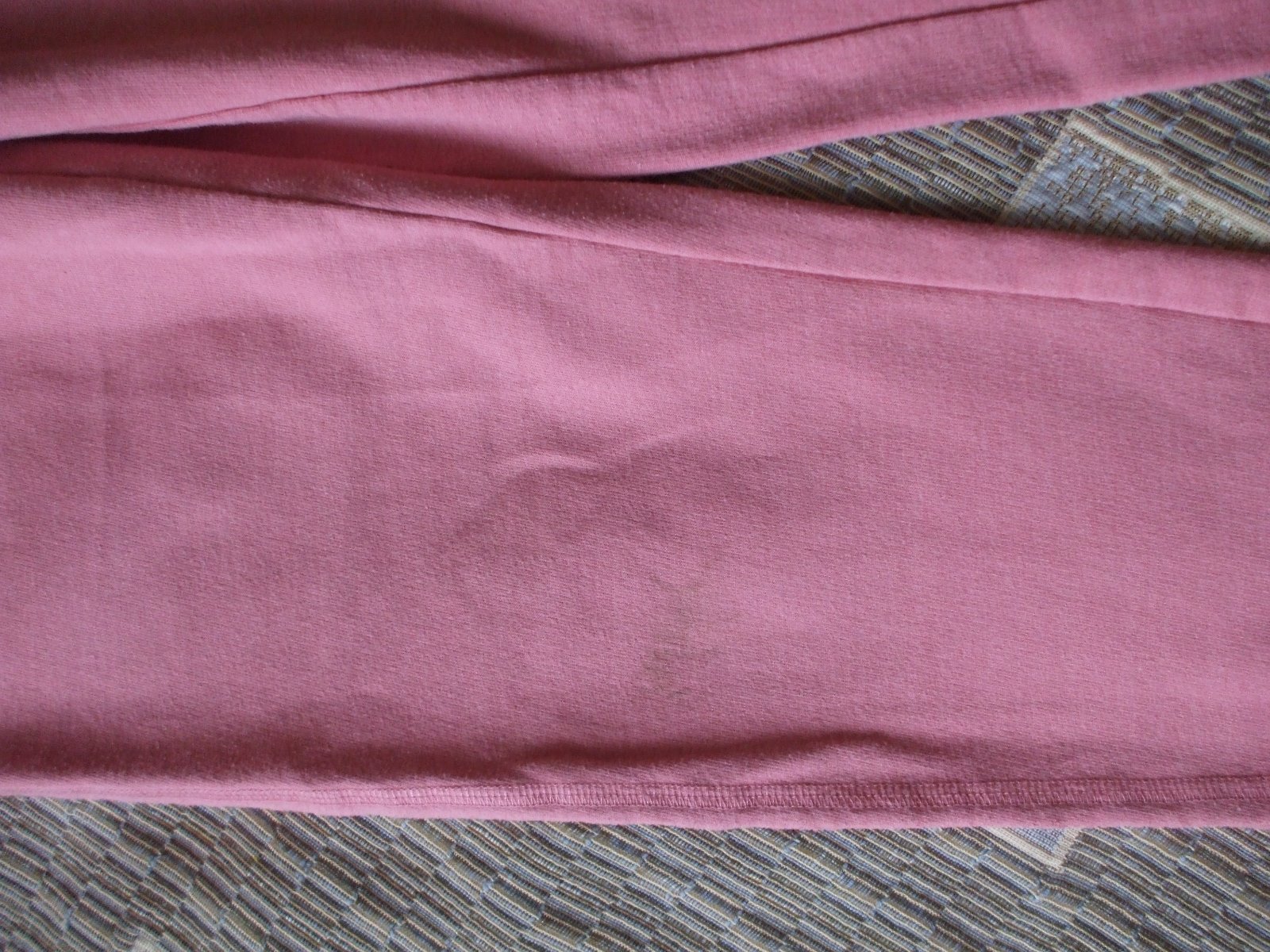 Bez poškodenia, akurát na tepláčikoch je naboku taká šmuha, ktorú ani nie je poriadne vidieť, aj som to odfotila. Krásne to spolu ladí, aj keď sa mi to nepodarilo úplne verne odfotiť, buď foťák zaostril na mikinu alebo na tepláky.