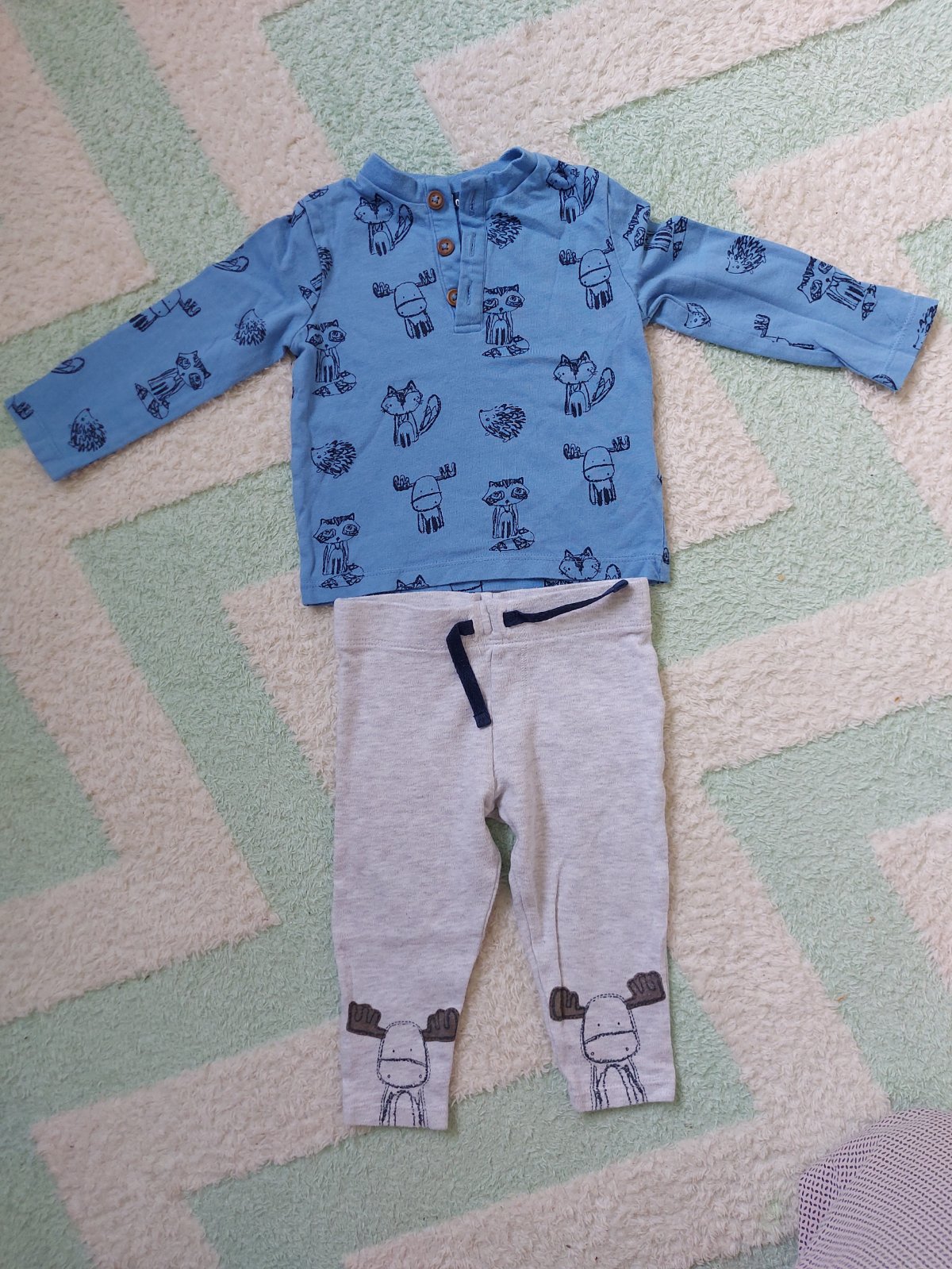 Posúvam nové supravicky pre chlapca. Modrý Mickey komplet bavlnený 6-9m/7€ Hnedá súprava mikina, legíny 6-9m/8€ Sveter líška s teplakmi 9-12m/6€ Všetko spolu 20€