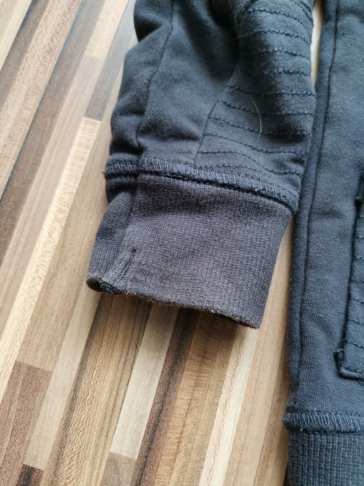 Veľmi príjemný komplet na nosenie. Patenty na rukávoch sú trochu ošúchané, ale viď foto. Inak je komplet bez dierok