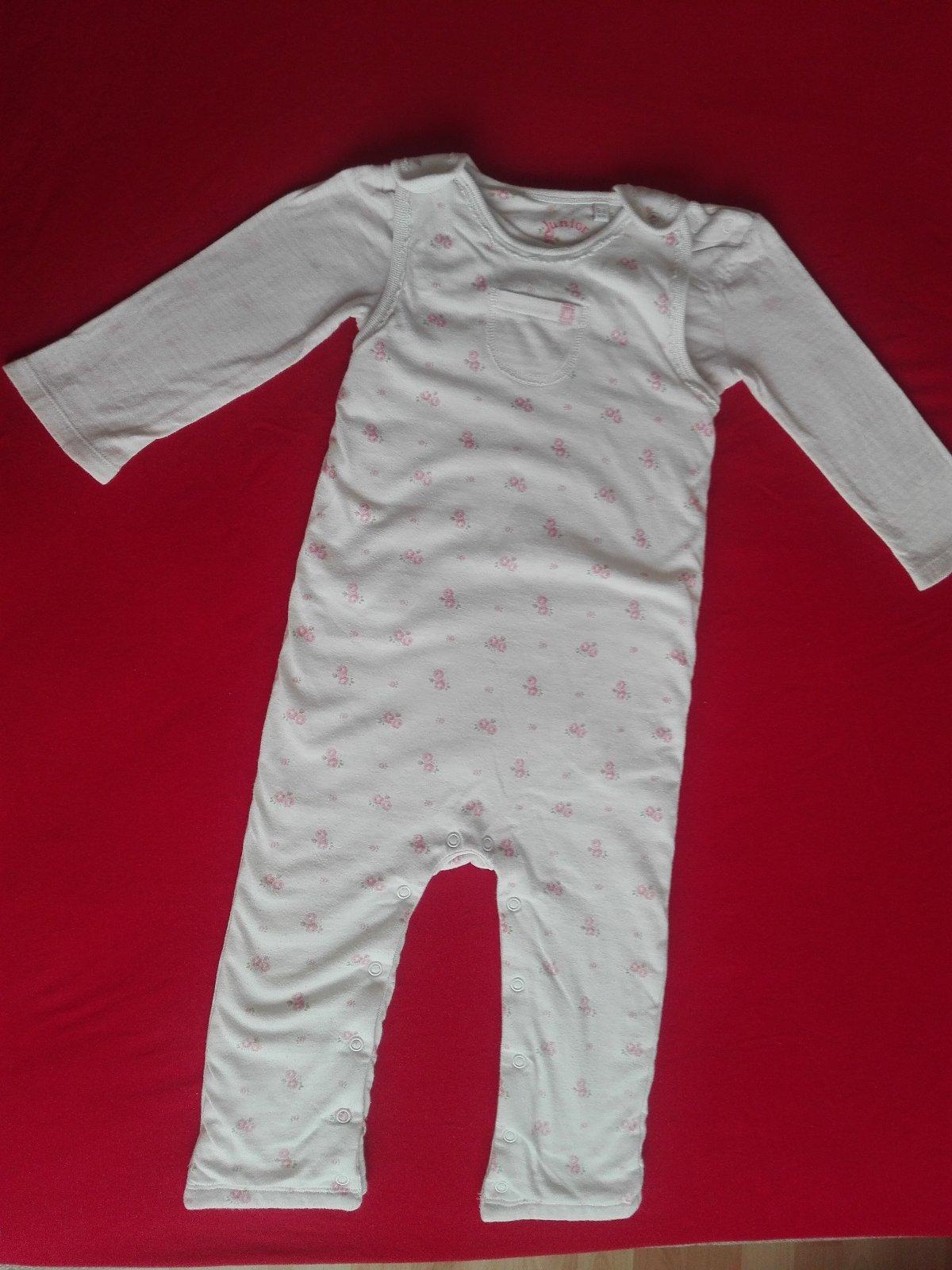 Termo komplet, material bavlna, kupeny vo Velkej Britanii, zn, Junior J, 12-18 mes. Farba biela s bledo-ružovým vzorom.
