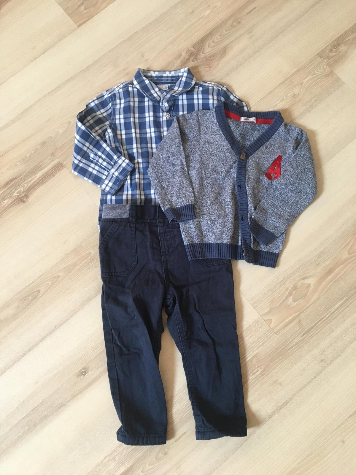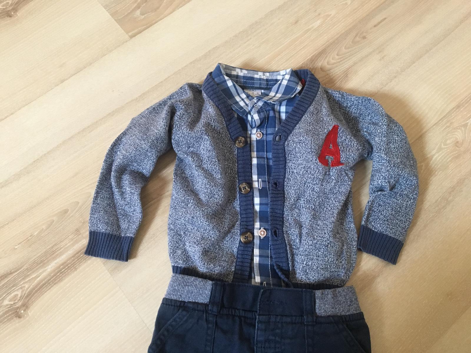 Krásny komplet vhodný aj na svadbu aj oslavu pre malého fešáka.Nohavice sú podšité takže sú teplejšie.Košeľu sme nemali ani raz na sebe zabudli sme totiž na ňu a svetrík značky pepco sme nosili často,ale nevidieť to na ňom.Kombinovali sme ho s viacerými košeľami a tričkami.Nie je hrubý preto bol vhodný aj na letné večery.Cena kompletu je 15€ už aj s poštovným.