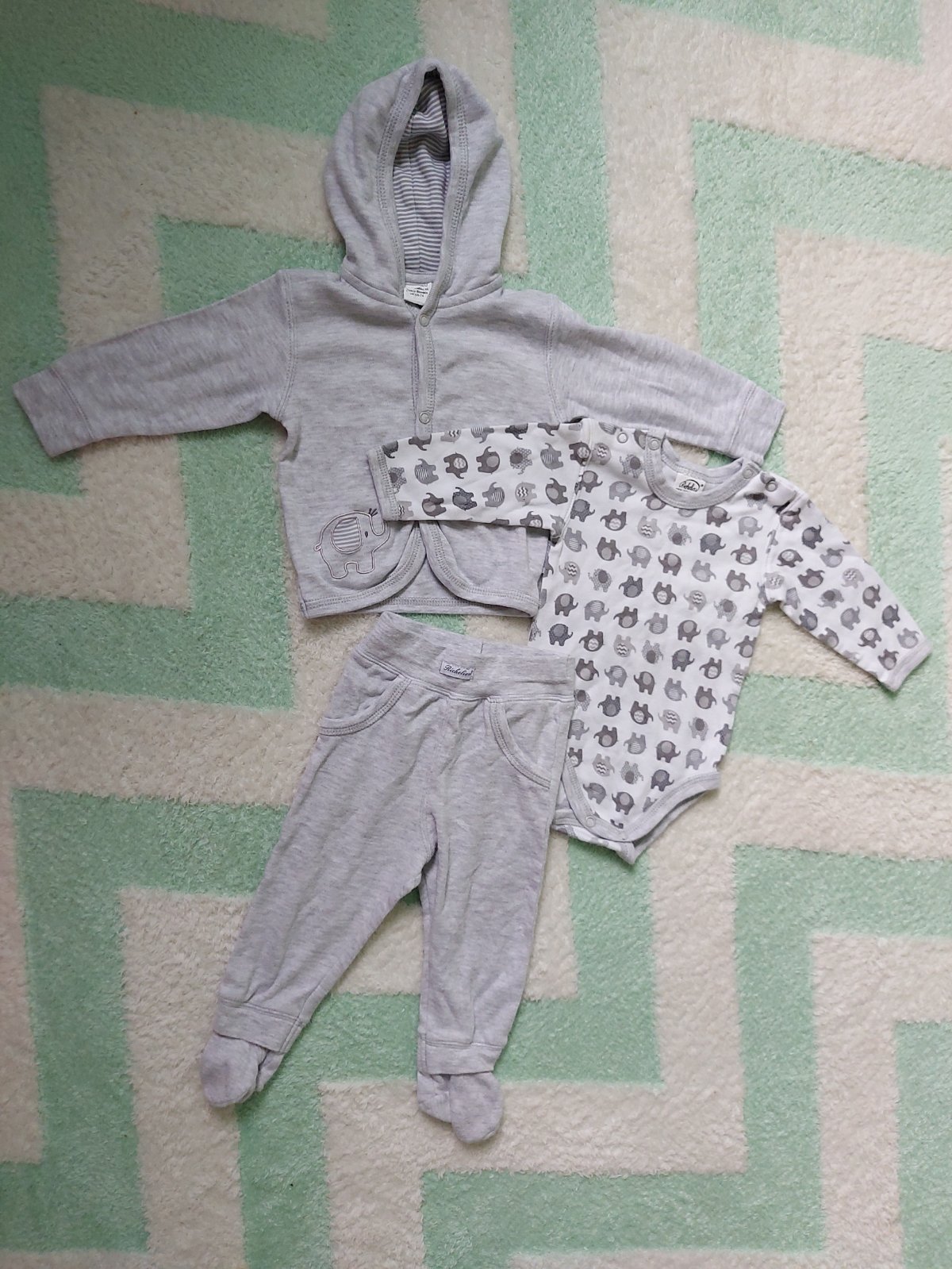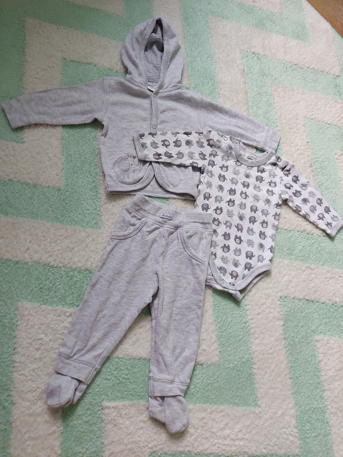 Mikinka v top stave (mozno raz oblečená), na body som našla fliačik, ktorý možno pójde odstraniť (ja už neskúšam) inak by bolo v top stave kedže bolo možno max 3x oblečené , tepláčiky majú žmolky tie sme nosili častejšie- veľmi praktické a príjemné.