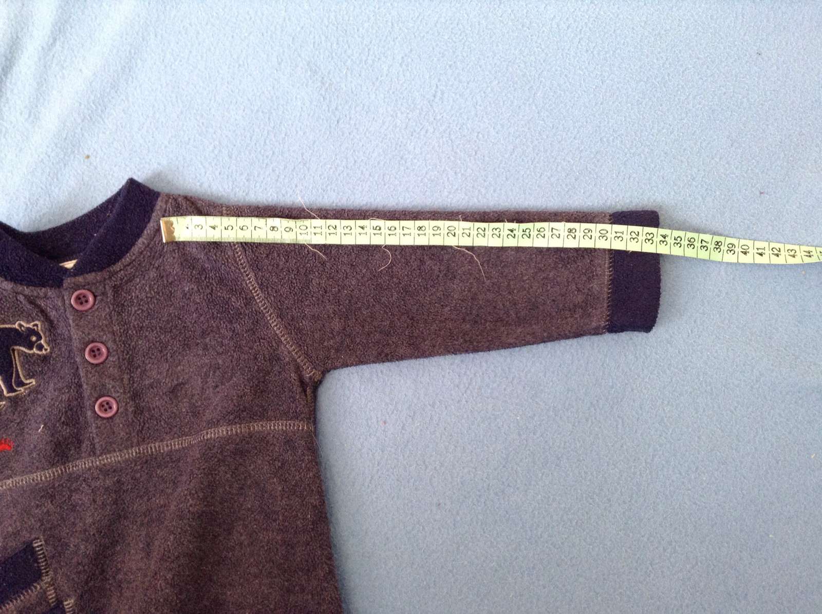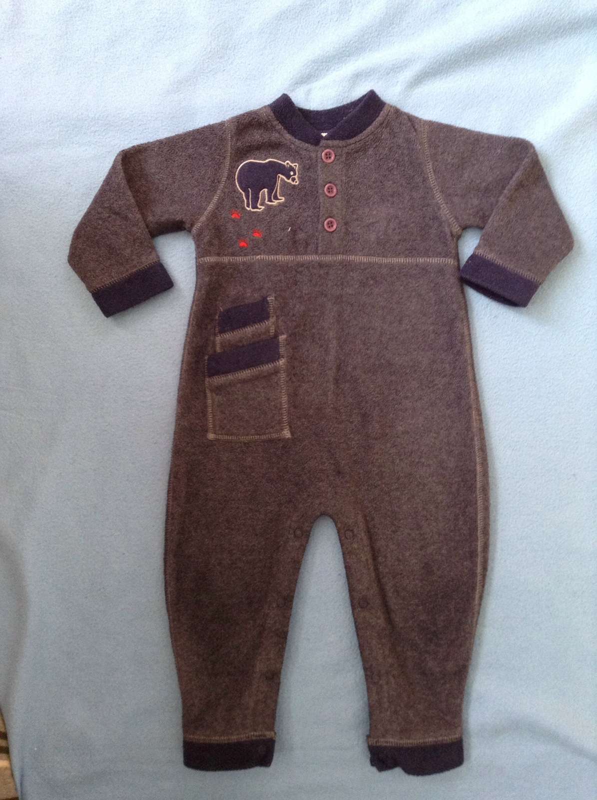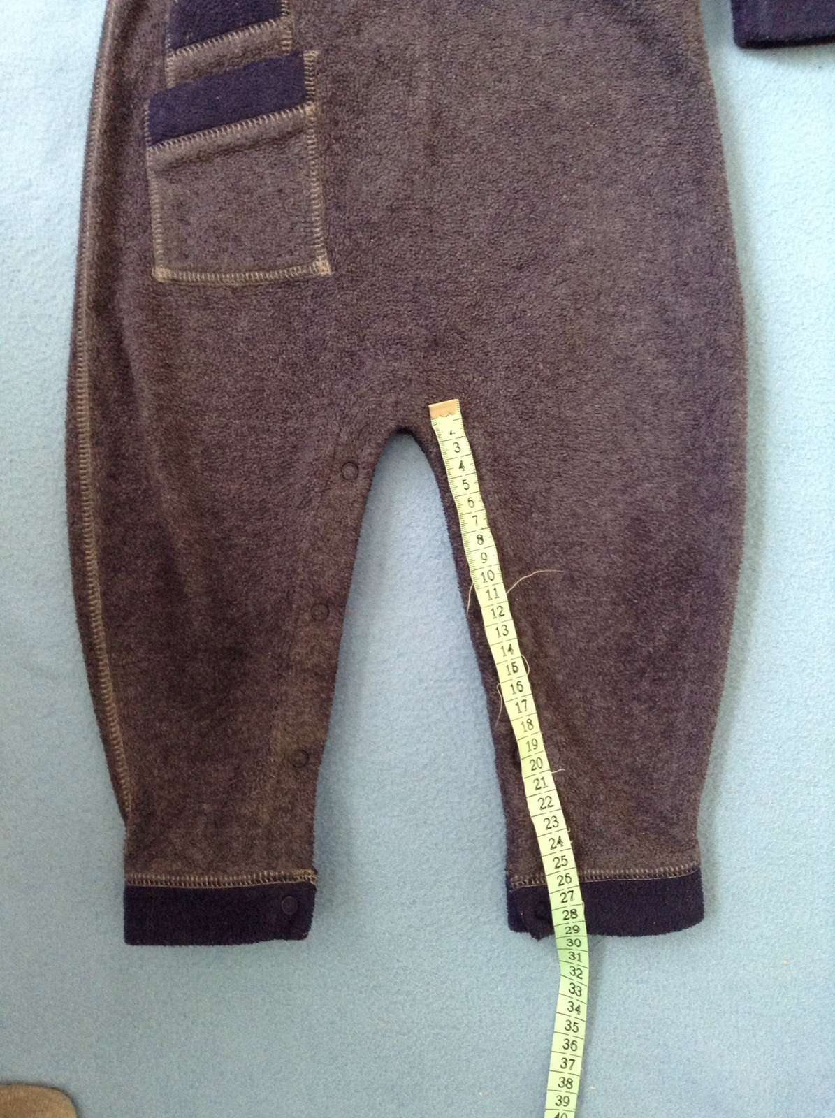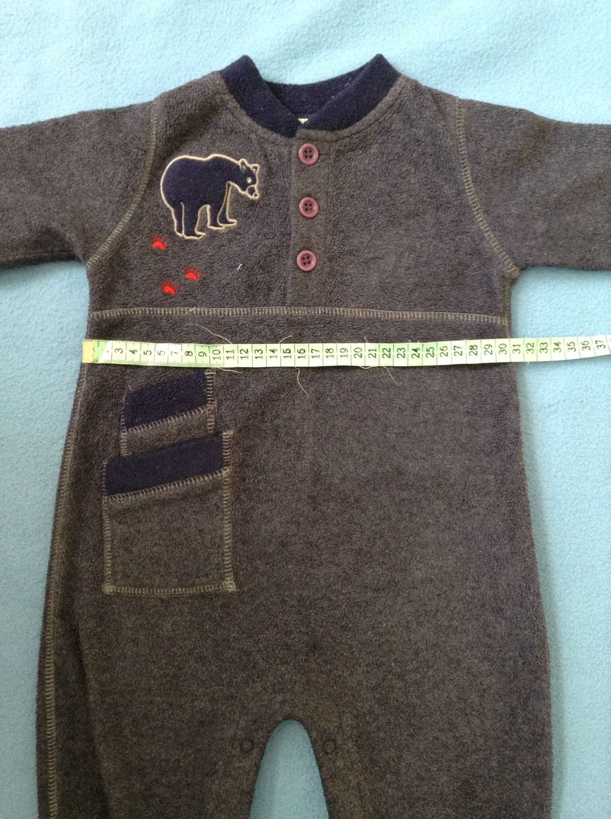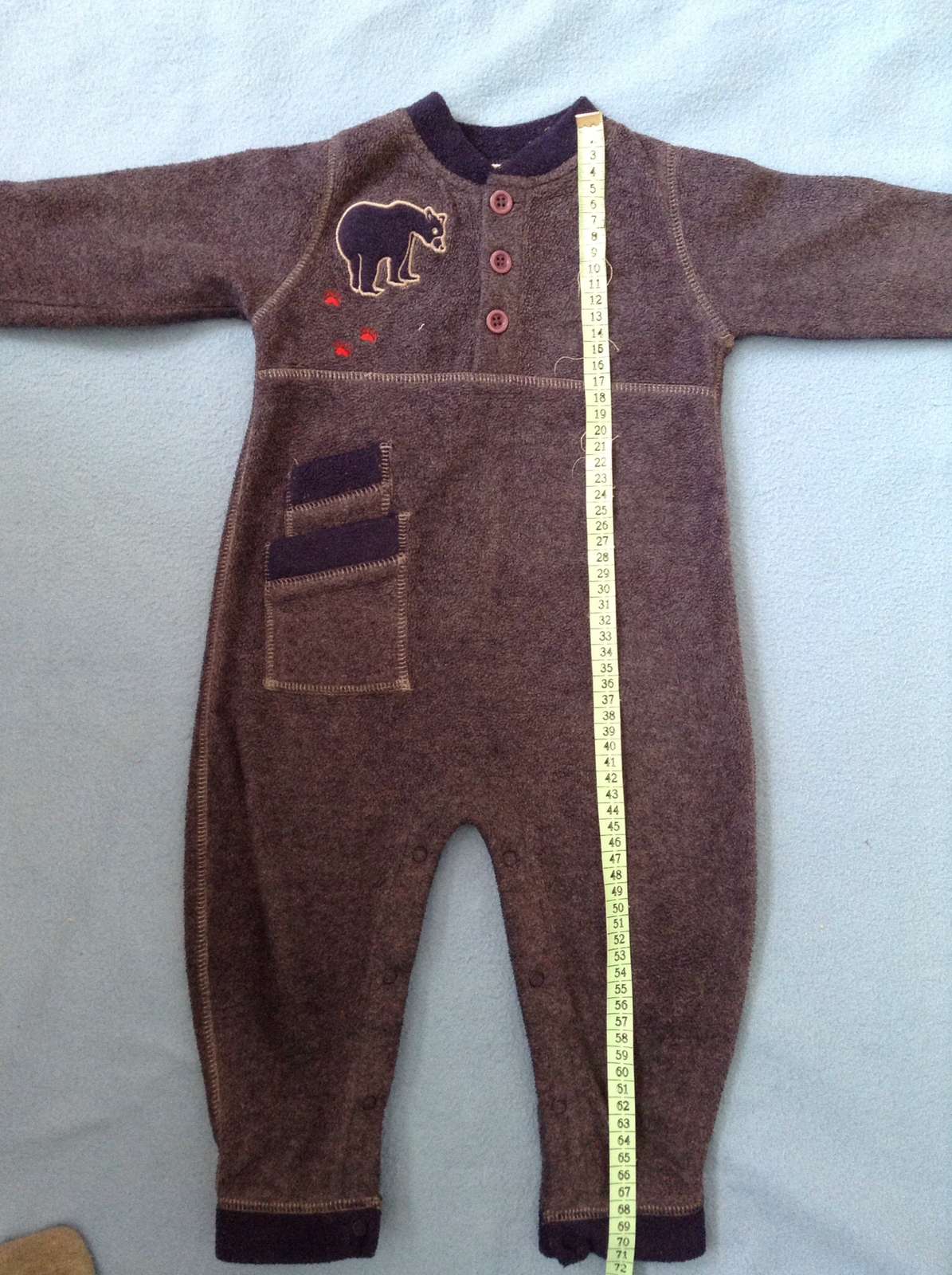 Modrosivy. Na stitku uvedena velkost na 18 mesiacov. Vyborny noseny stav kupeny tu na mk. Bol by nam dobry, keby sme nenosili latkove plienky. Tie nam skracuju dlzku plece-rozkrok. Na to som nemyslela :( najrealnejsia farba na 4 fotke, kde je merana celkova dlzka.