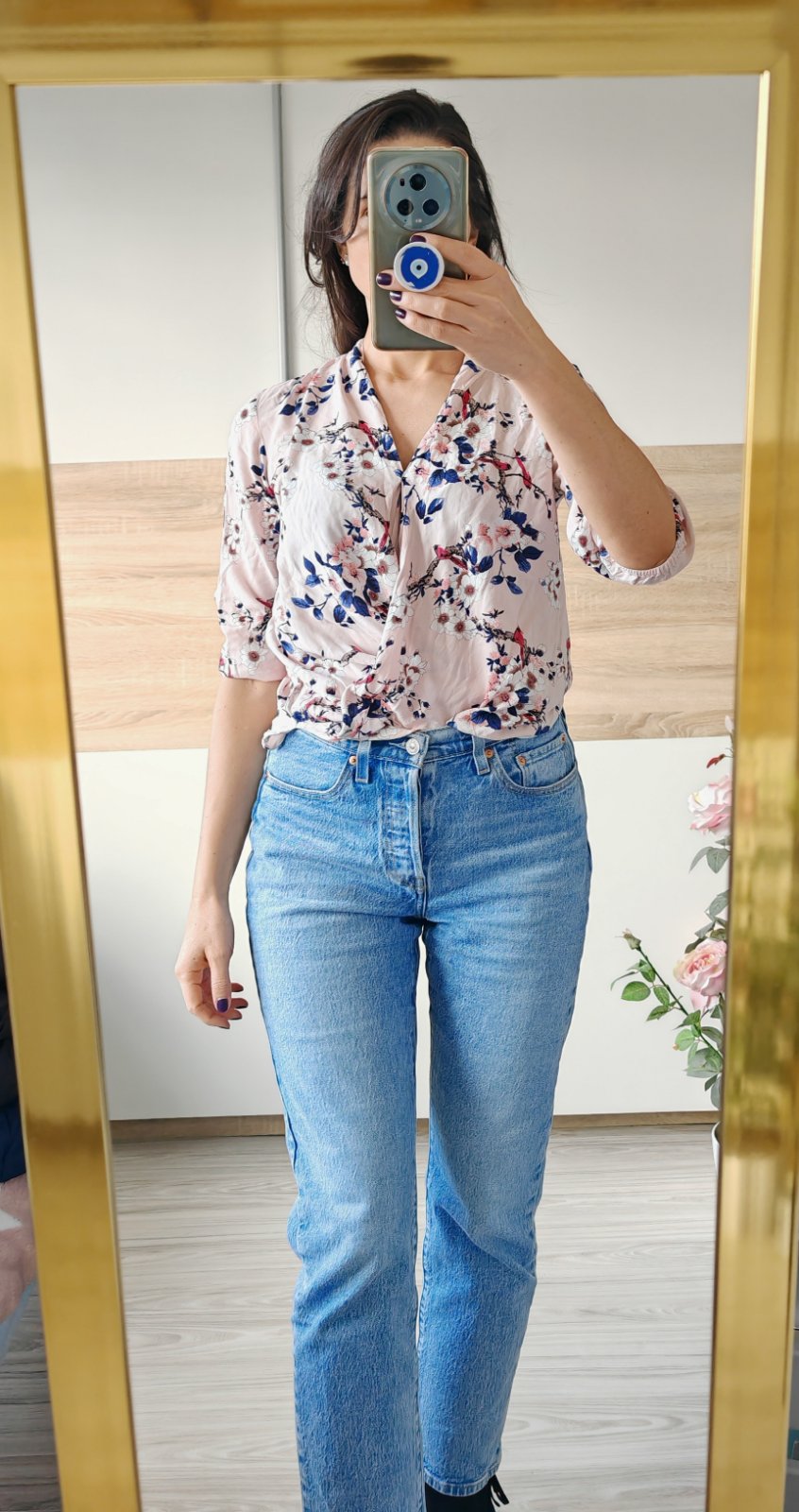 1x oblečená, bez poškodenia, príjemný materiál 100% viskóza, 3/4 rukávy, šírka pod pazuchami 45 cm, dĺžka blúzky od pleca 53 cm predok, 63 cm zadok