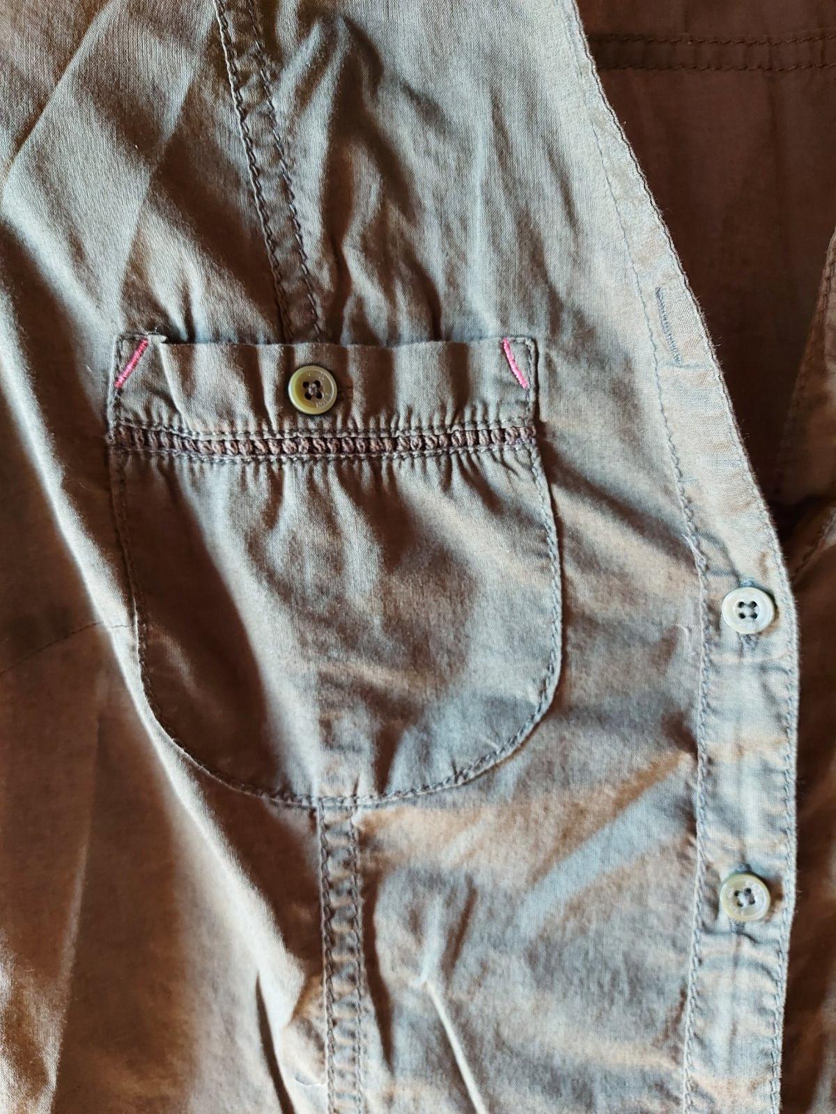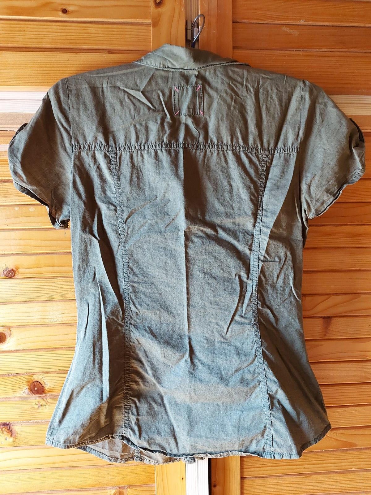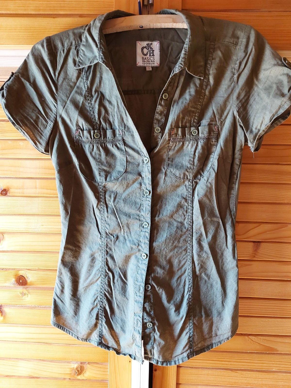 Košeľa s krátkym rukávom, s kapsami-viď foto, na gombíky, š. pod pazuchami - 40, dĺžka zadného dielu - 61, pekne tvaruje postavu