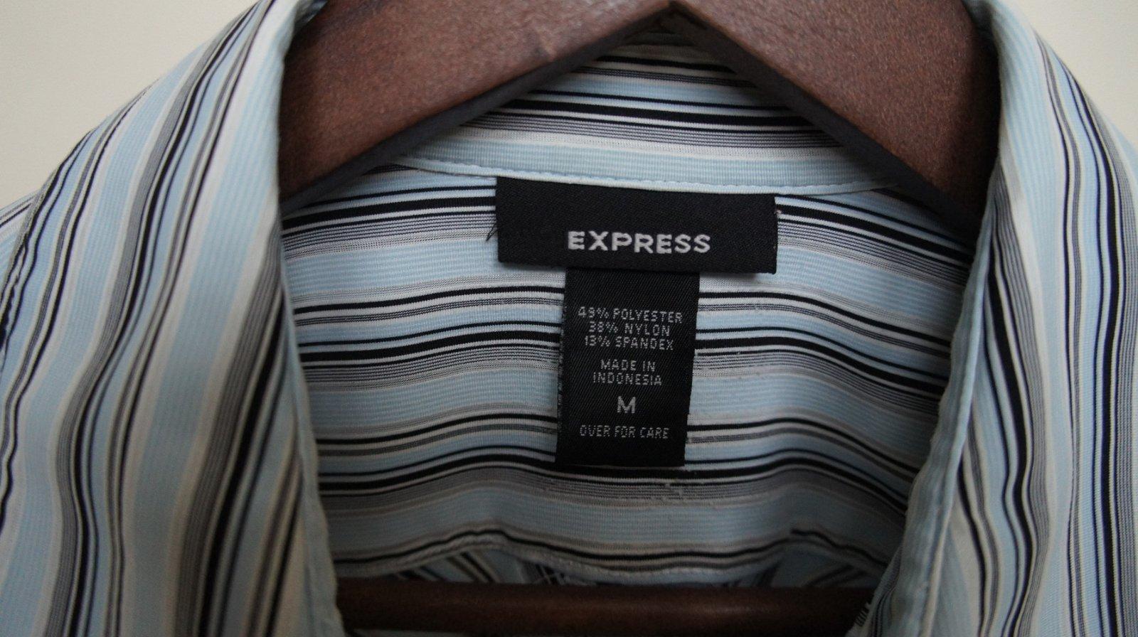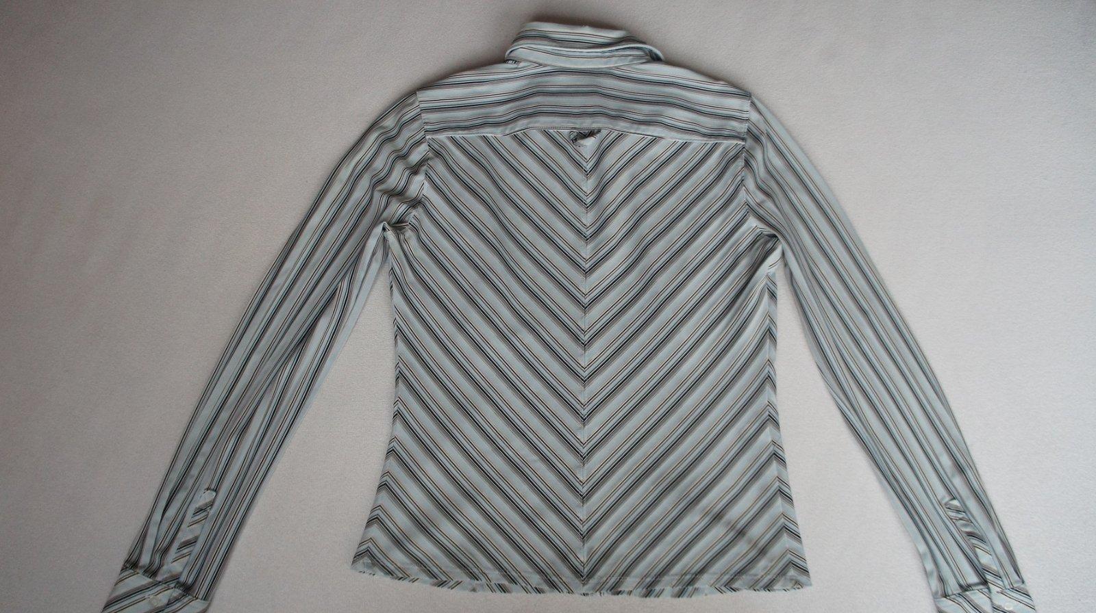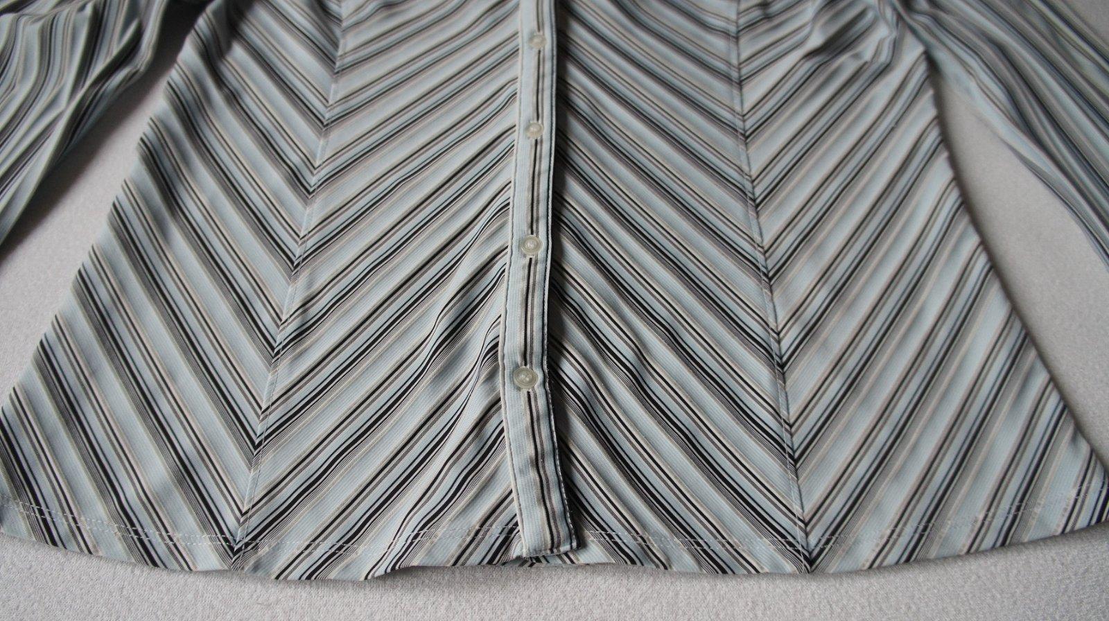 Predám túto dámsku košeľu, veľkosť M, značka Express, kupovaná v USA. Farba bledomodrá, v kombinácii s čiernou. Je strečová, elastická, prispôsobí sa. Zloženie: 49% polyester, 38% nylon, 13% spandex.