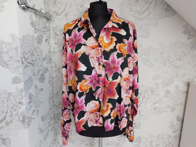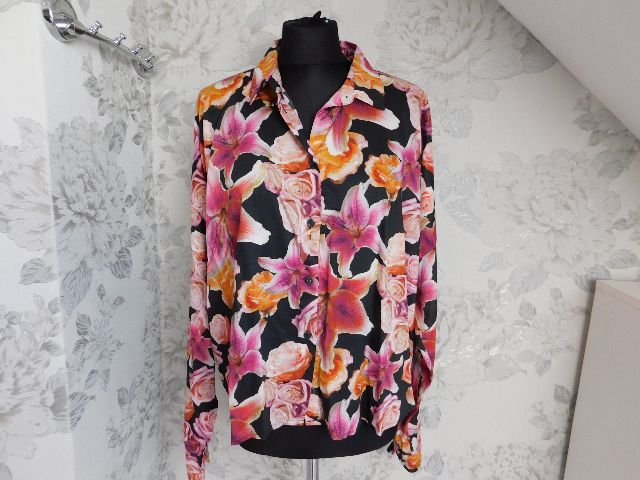 Kvalitna velmi pekna vzdušna bluzka,čiernej farby s potlačou.100%viskoza.ako nova. se21