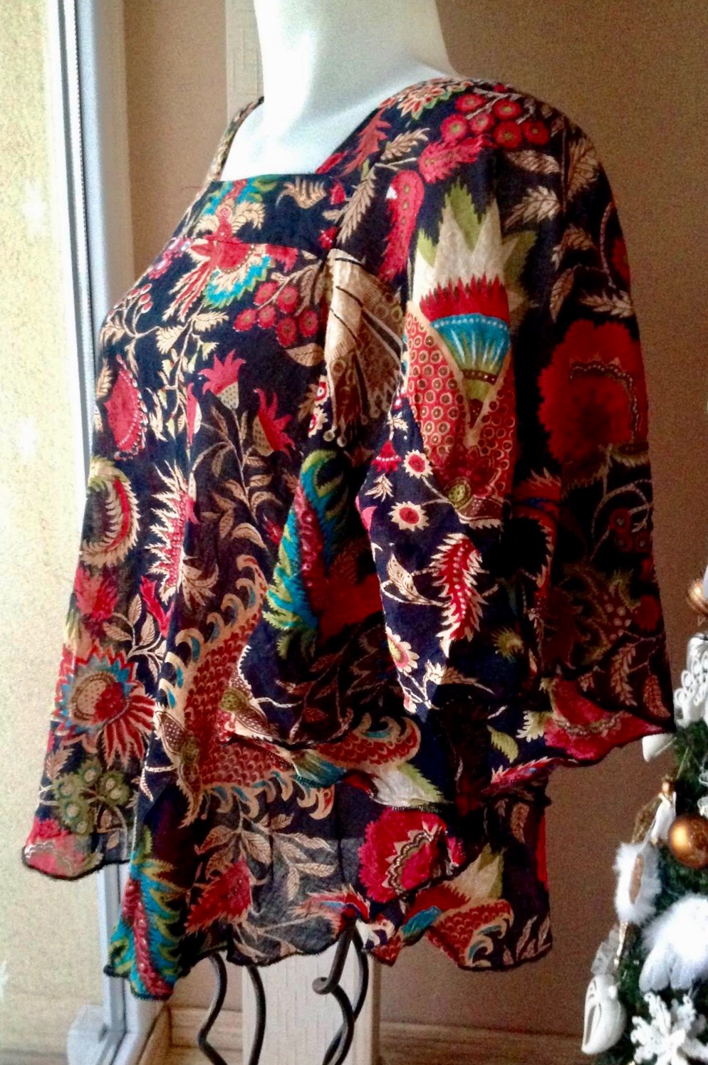 Krasna bavlnena bluzka s netopierimi rukavkami,velkost nevidim ale netreba ani merat,sadne od 36-38...top stav