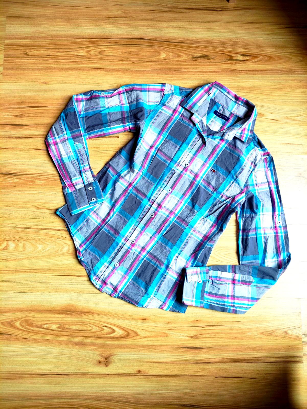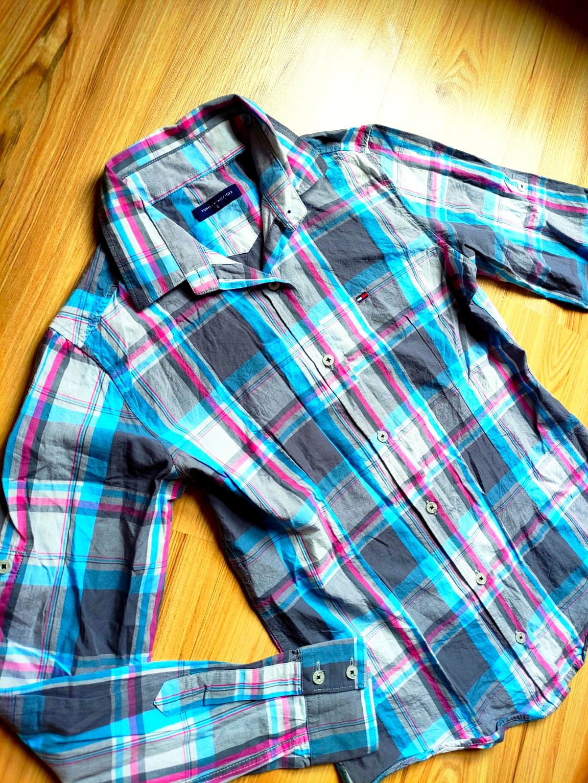 Raz oblečená košeľa zn. Tommy Hilfiger, 100% bavlna, značka aj na gombikoch (vid foto) , bez poškodení, rukavy sa daju vypnúť nad lakte.