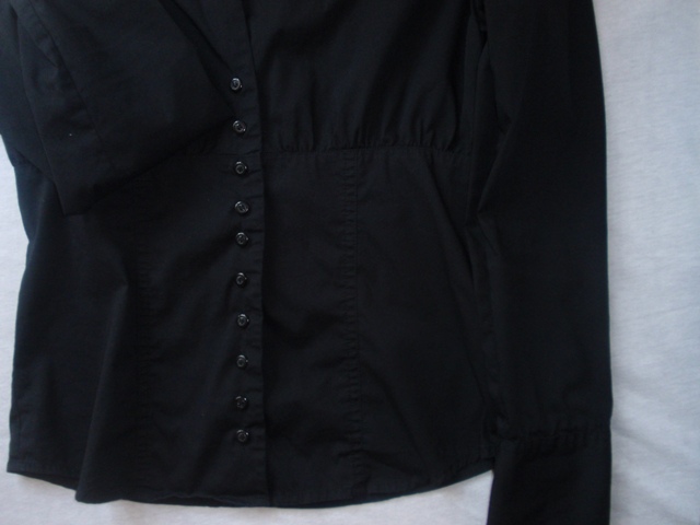 Košeľa je vo výbornom nosenom stave - 100%stav. Je tmavočiernej farby, zapínanie na gombíčky, pod prsiami trocha riasená. Je ozaj pekná. Veľkosť písaná 38 ale riaďte sa prosím rozmermi.