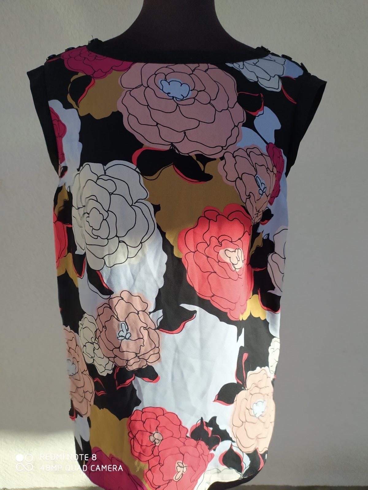 Blúzka s kvetmi,v dobrom stave,z boku na zips.Miery: šírka pod pazuchami 2x45 cm,dl. od krku dole 60 cm.