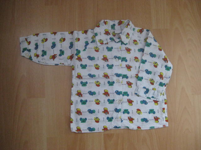 Krásna retro košielka s myškami, kvalitný slovenský výrobok, moja mamina ju odložila a spomenula si na ňu až keď nám bola skoro malá, takže je vo veľmi zachovalom stave, mali sme ju oblečenú asi 2x, je bez dier a poškodení, je to taký krepový veľmi príjemný materiál, vpredu zapínanie na gombíky.