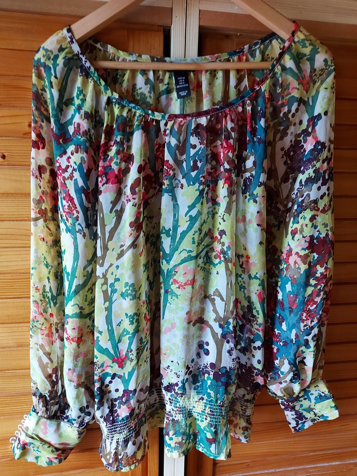 Blúzka H&M, š. pod pazuchami 52, d. rukávu 66, d. zadného dielu 59,5, príjemný materiál, mierne presvitá, pekné ukončenie rukávov-viď foto, blúzka v spodnej časti ukončená na širšiu gumu