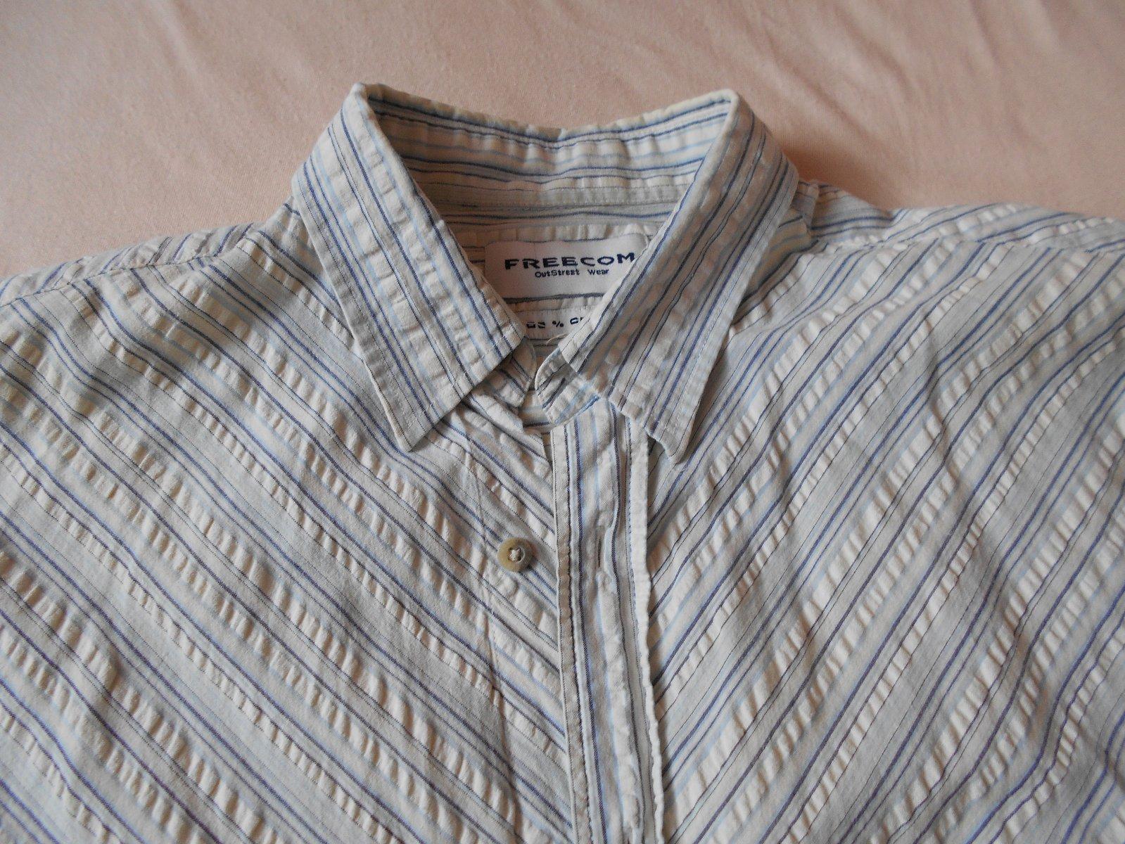 Pánska košeľa krepového materialu, netreba žehliť.podklad biely-smotanový s bledomodrými pásikmi -šikmo.ako nová