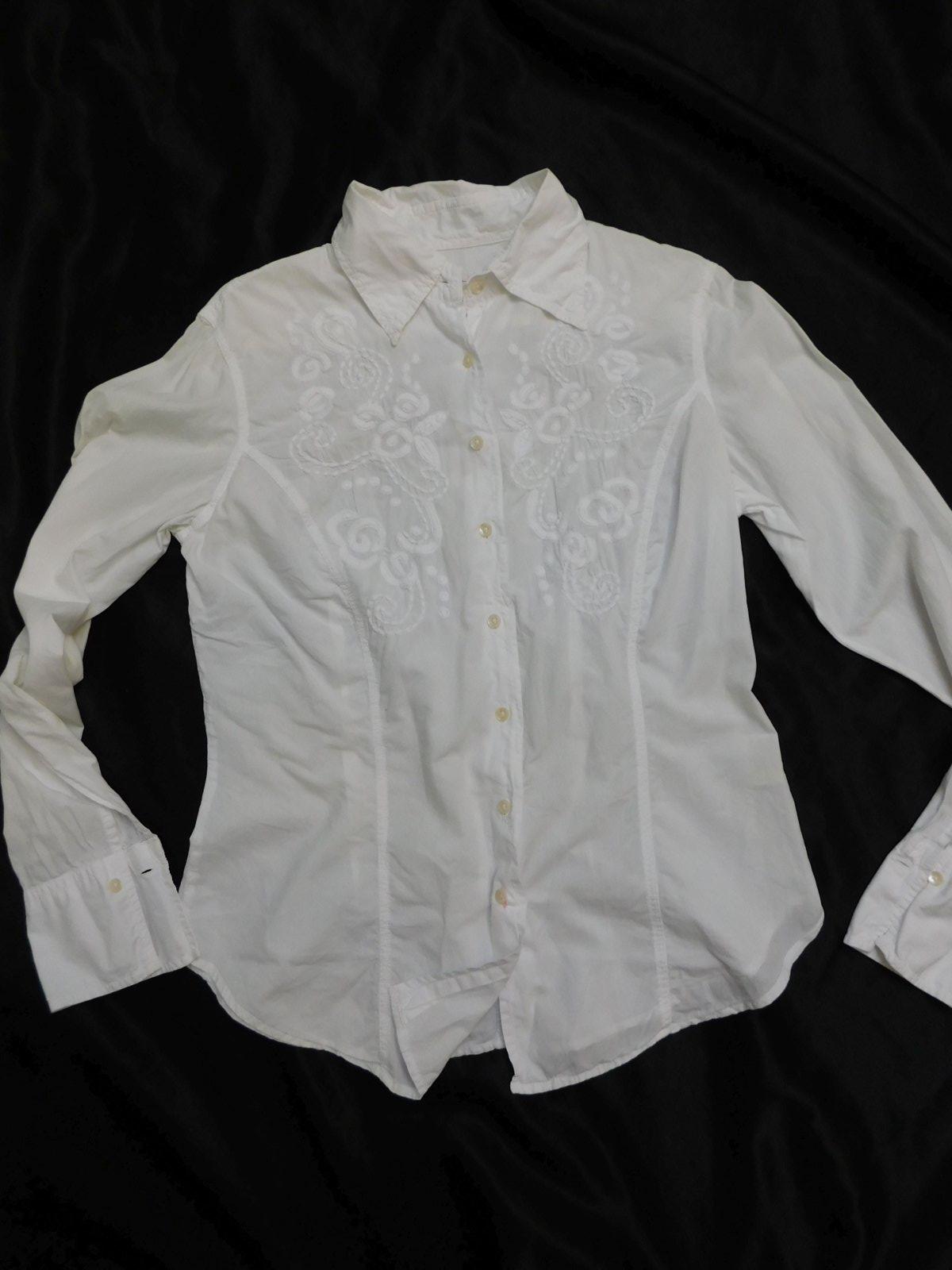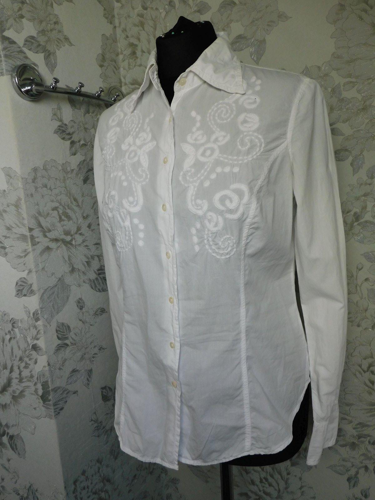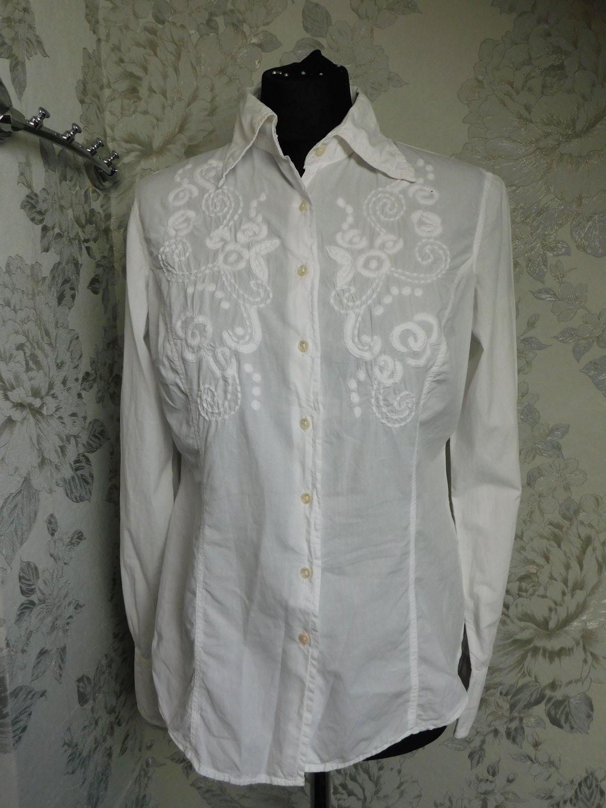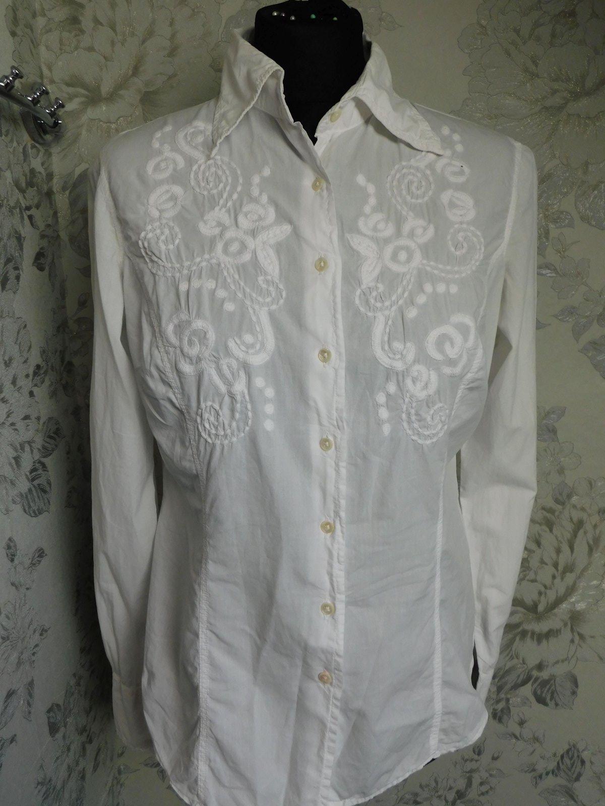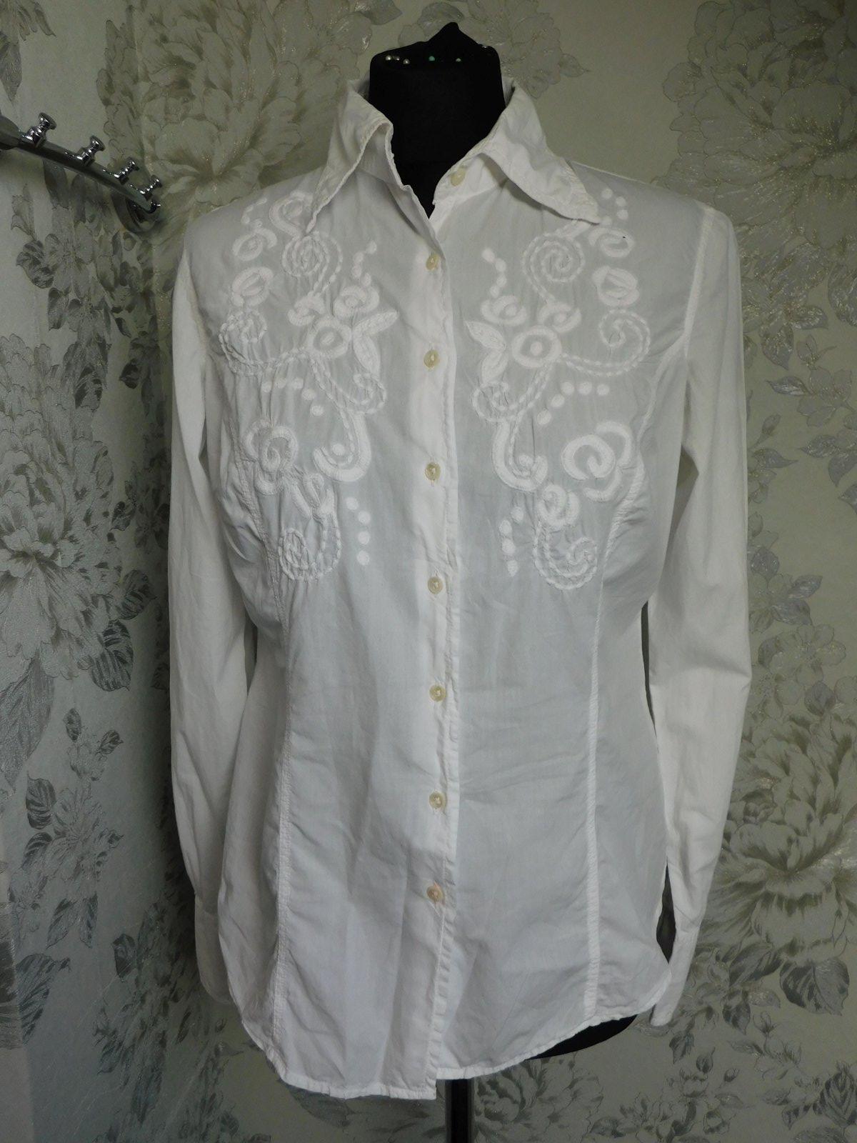 Luxusna košelova bluzka,bielej farby,vzdušna,vpredu zdobena vyšivkou.100%cotton. super stav. PC 89€. se19