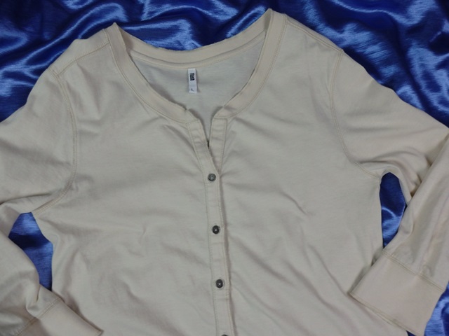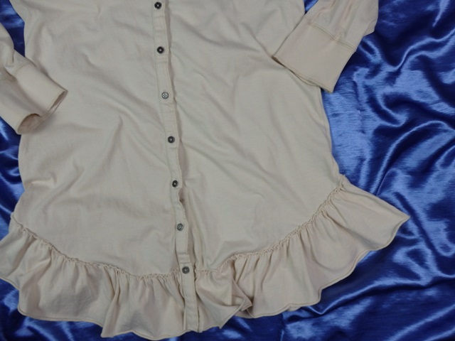 Kvalitná úpletová tunika maslovej farby, so zapínaním po celej dĺžke, materiál 100% bavlna, supe stav.