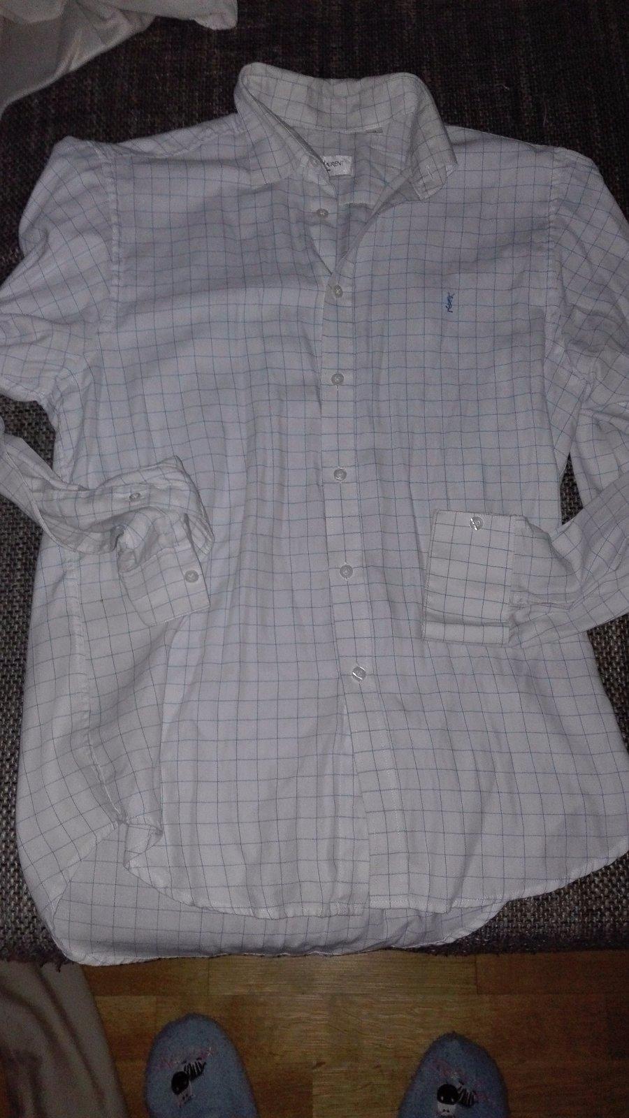 1 krat oblecena panska kosela YSL original, zakladna farba biela s modrym znakom a modrymi kockami, bavlnena, 100% stav,