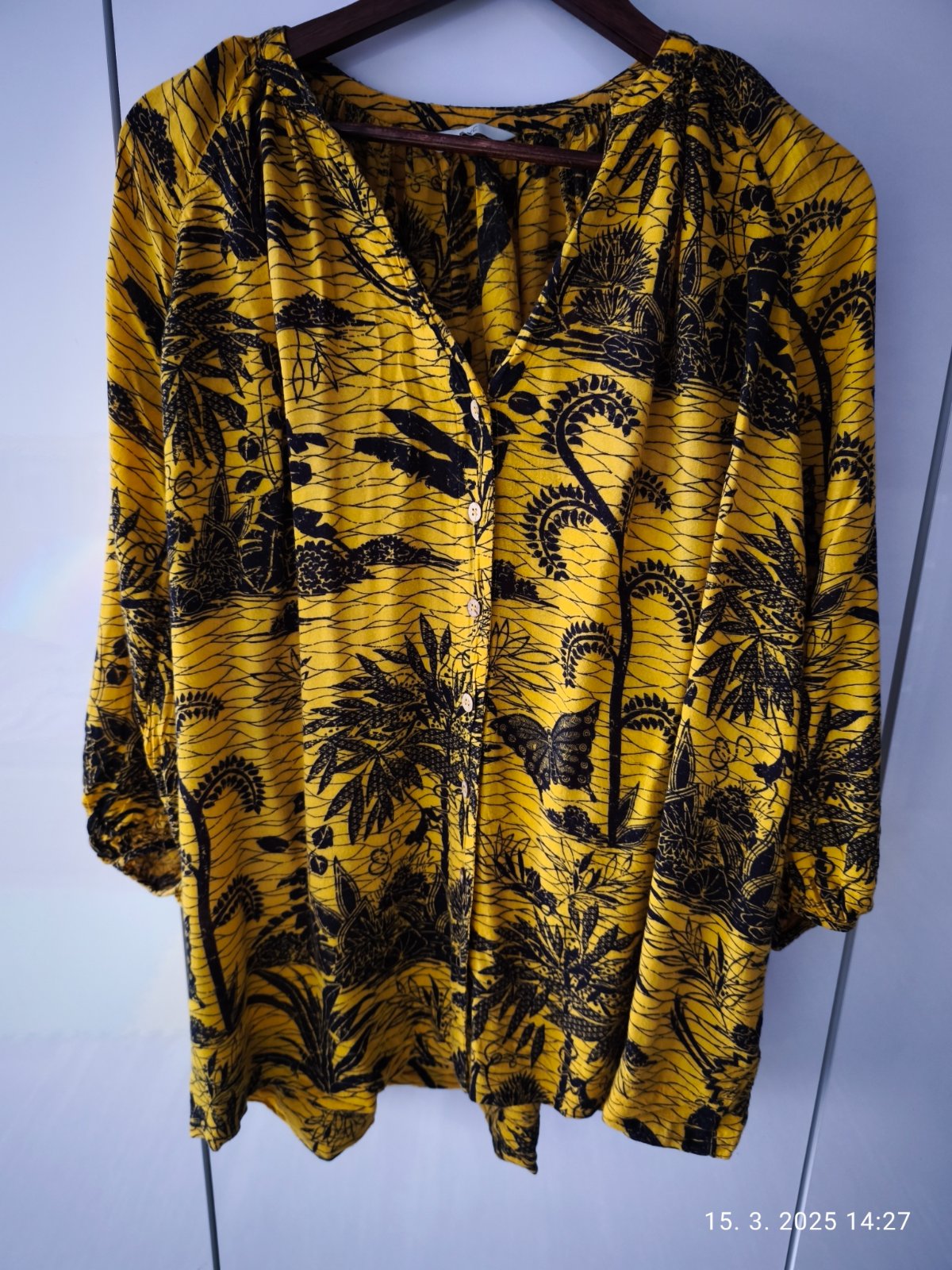 Na stitku pise 38 ale ja bezne nosim 44-46 a bola mi volna. Vhodna aj ako tehotenska. Rukav radlanovy 61 cm, od pleca dole dlzka 81 cm. Osobný odber možný z Prešova resp. zašlem poštou.