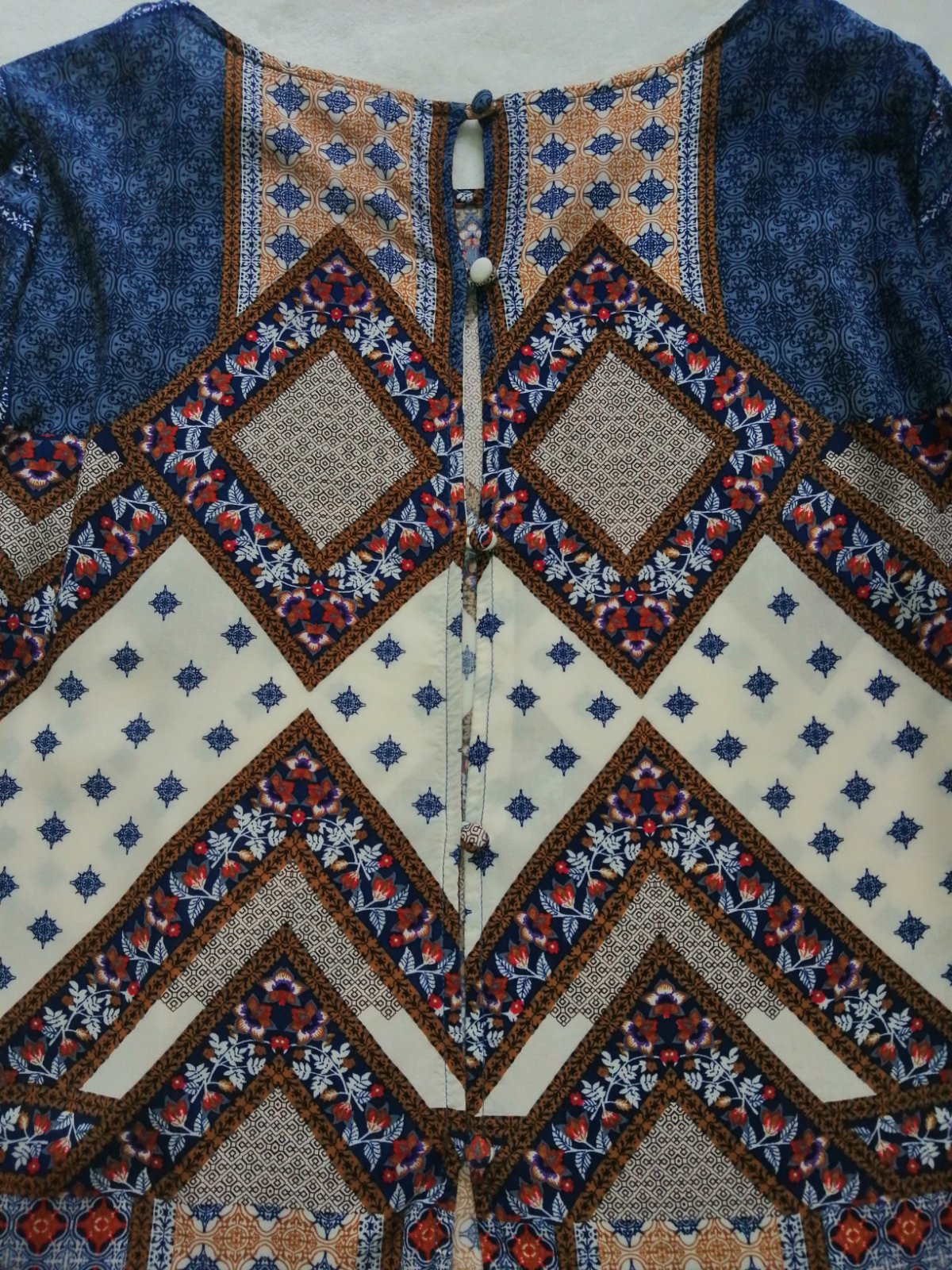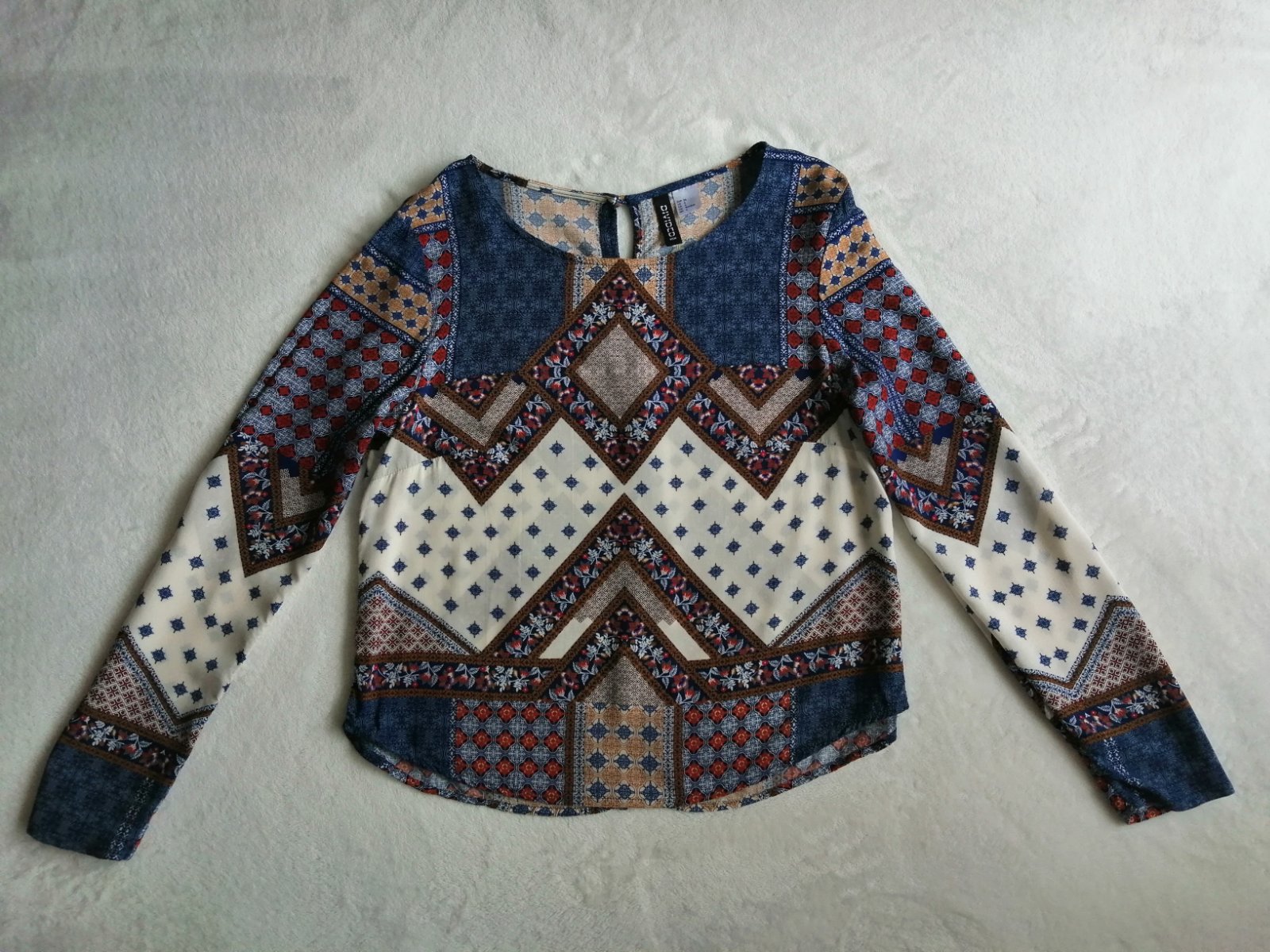 Krásna blúzočka od H&M, Veľkosť 36 alebo S. Príjemný materiál, zozadu gombíčky ale nie sú na rozopínanie, sú len ozdobné, oblieka sa ľahučko cez hlavu. V top stave, mala som ju 1x oblečenú na školení. Cena 5 eur + poštovné