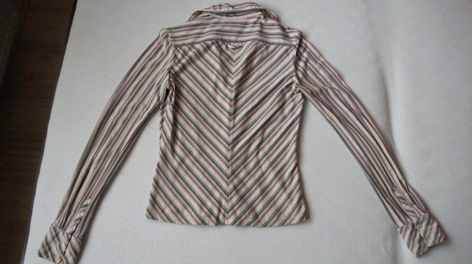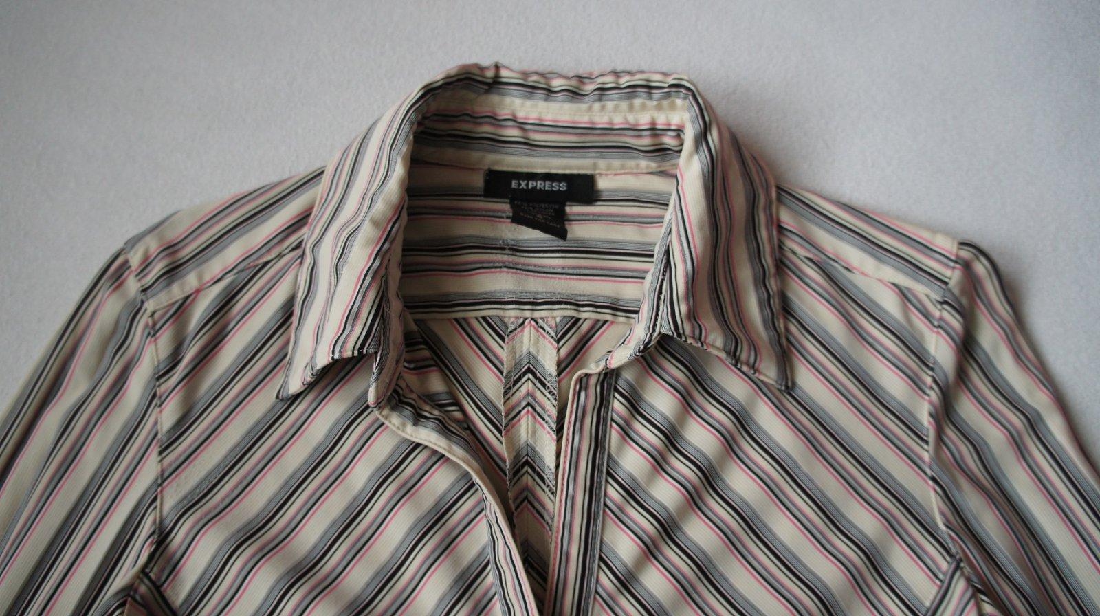 Predám túto dámsku košeľu, veľkosť S, značka Express, kupovaná v USA .Farba béžová v kombinácii s ružovou a čiernou. Je strečová, elastická, prispôsobí sa. Zloženie: 56% polyester, 33% nylon, 11% spandex.