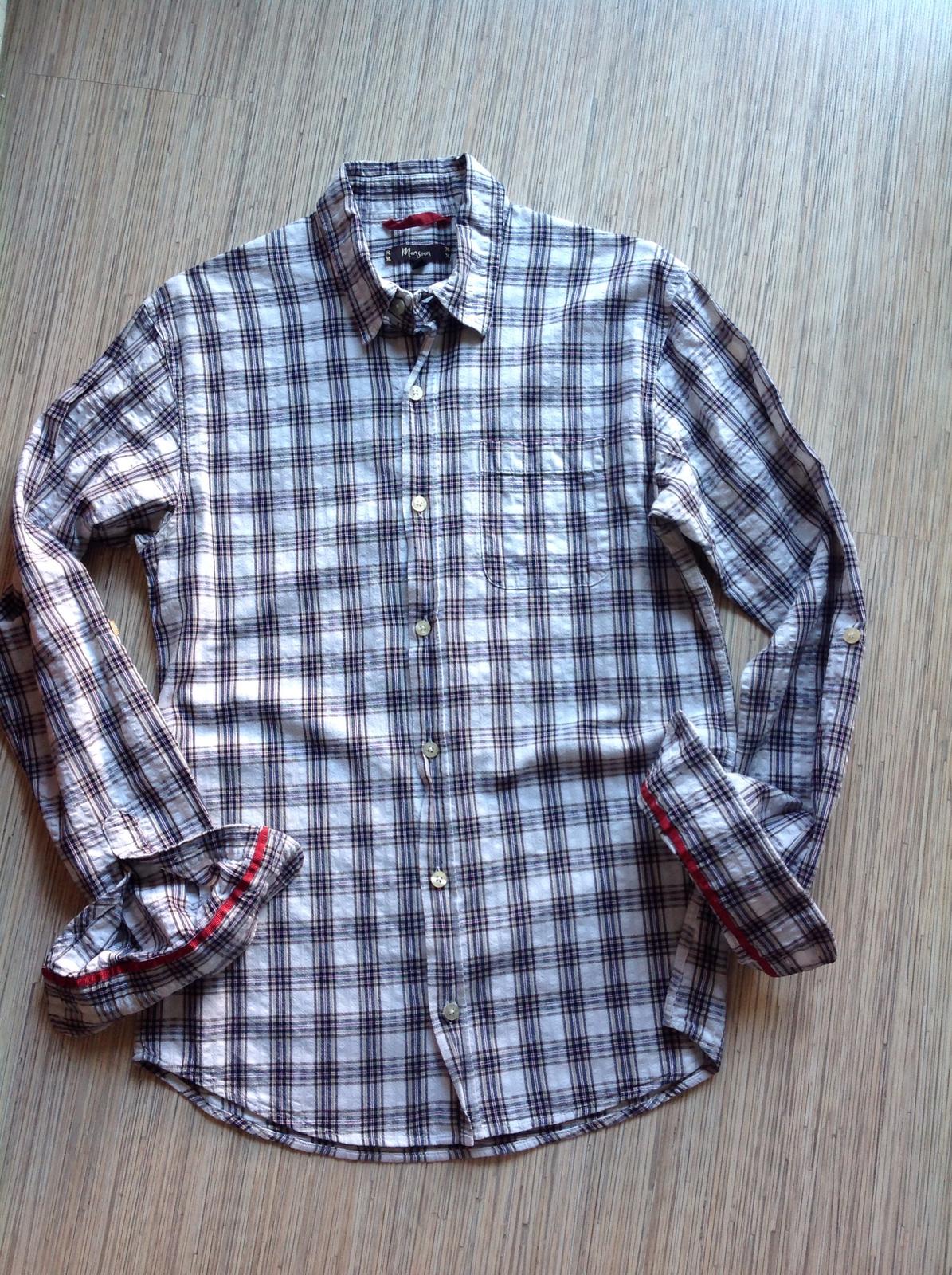 krasna bavlnenan v top stave,rukavy roll up,vyhrnutelne,daju sa vyhrnut a pripnut,d-71cm,bocna dlzka trochu kratsia,pazuchy 47cm,pas 46-47cm.plecia sirka 44cm,r-80cm od goliera
