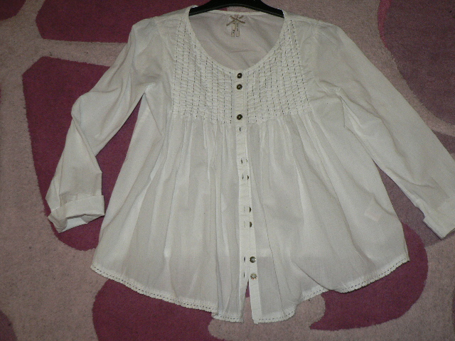 jemná blúzka, príjemný materiál - viskóza/polyester, v.140, ale je menšia, dĺžka 51cm