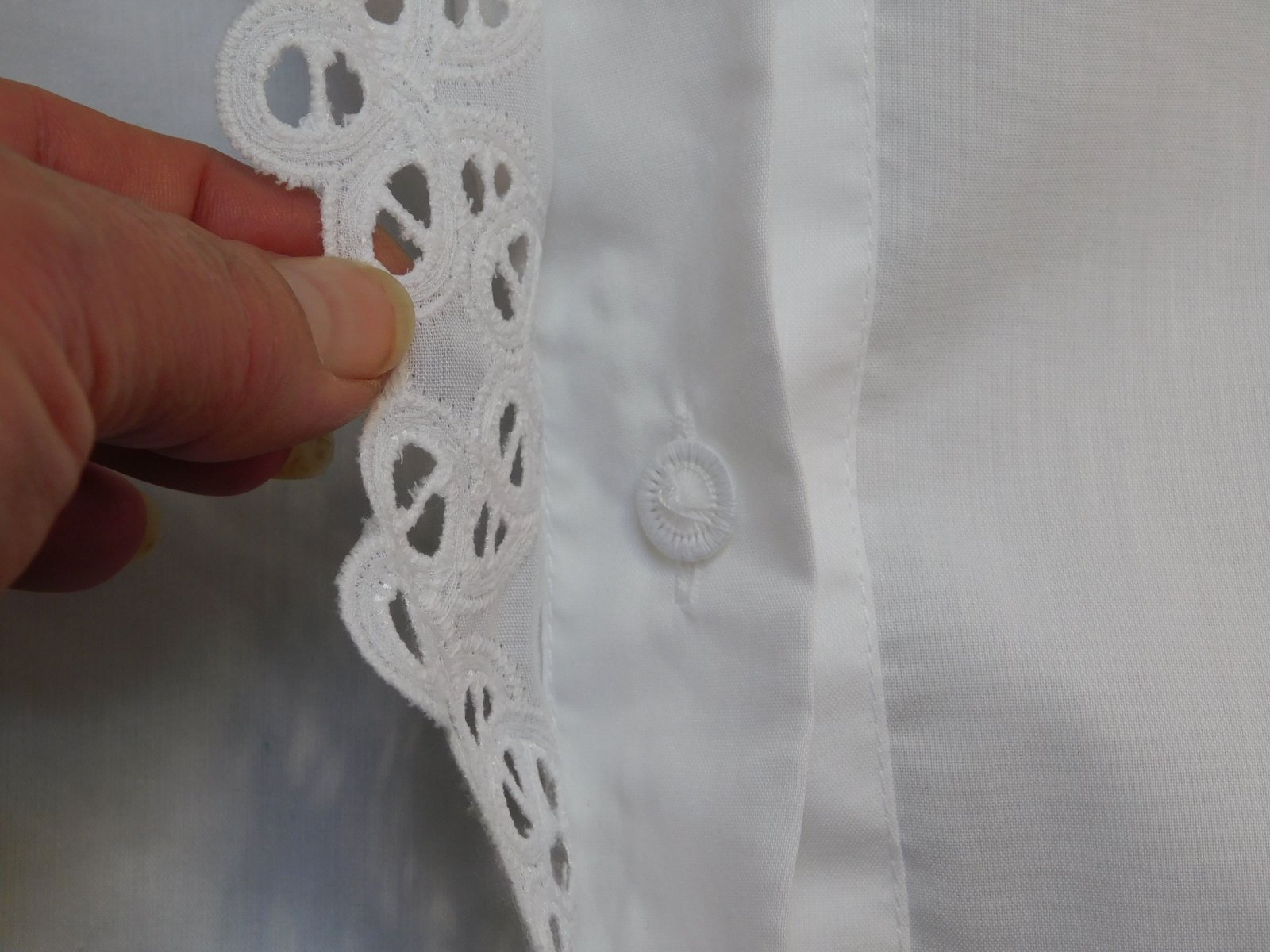 Luxusna bluzka ku kroju,bielej farby,lemovana nadhernou čipkou.70%cotton,30%plyester.nova len bez visačky. kroj