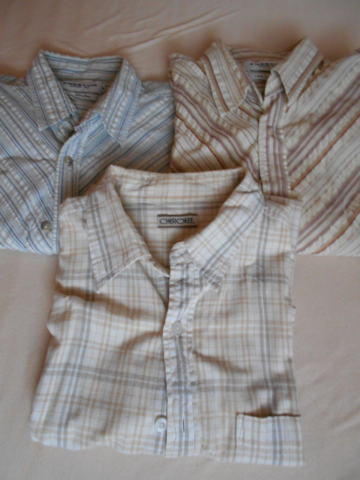 Tri košele, podklad biely- smotanový a rôzne pásiky. Materiál bavlna veľkosť L-42,málo nosené