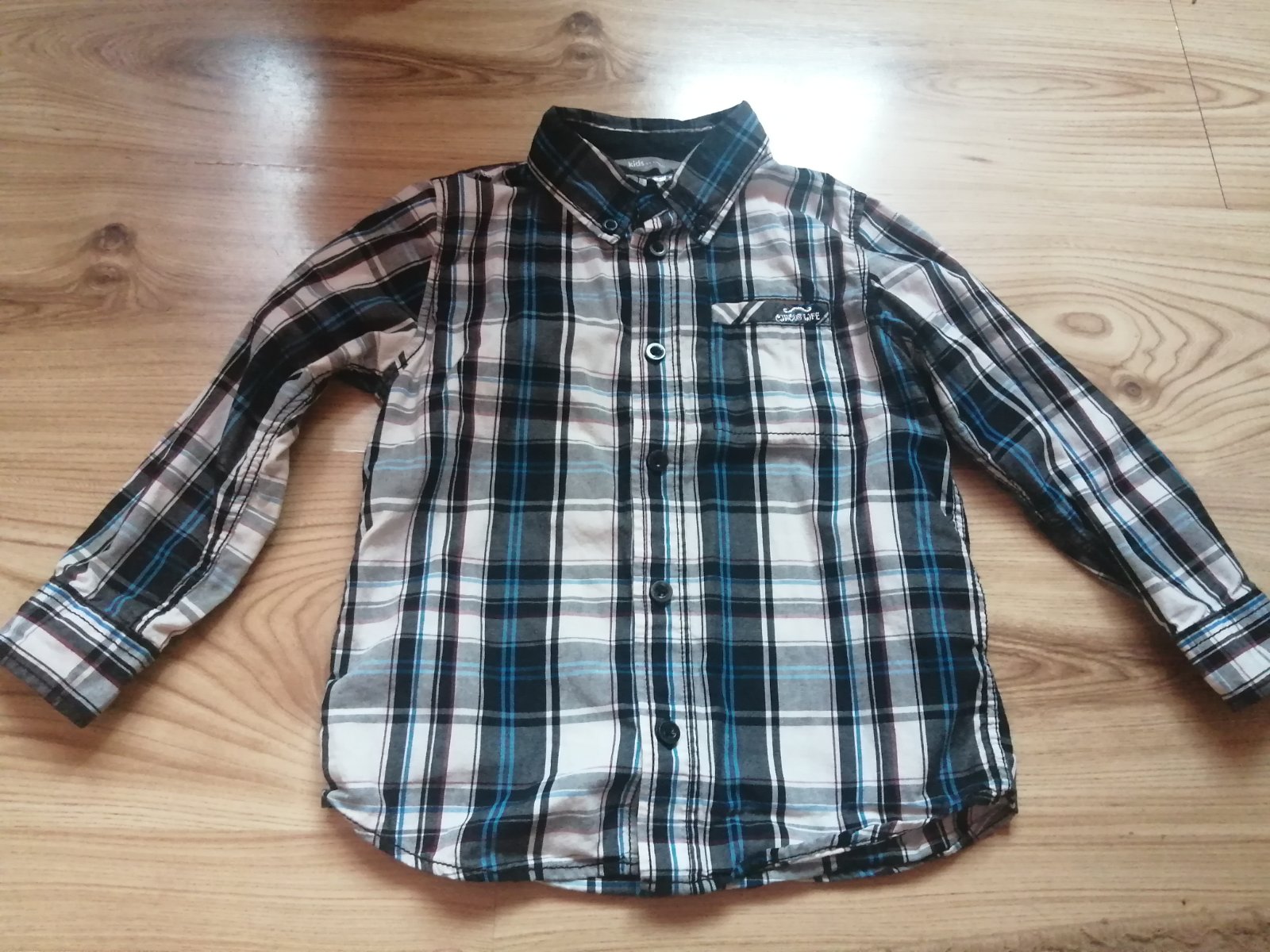 Košeľa vo výbornom stave, bez poškodenia. Vpredu klokanie vrecko. Dĺžka rukáva od krku 42cm, celková dĺžka 44cm.